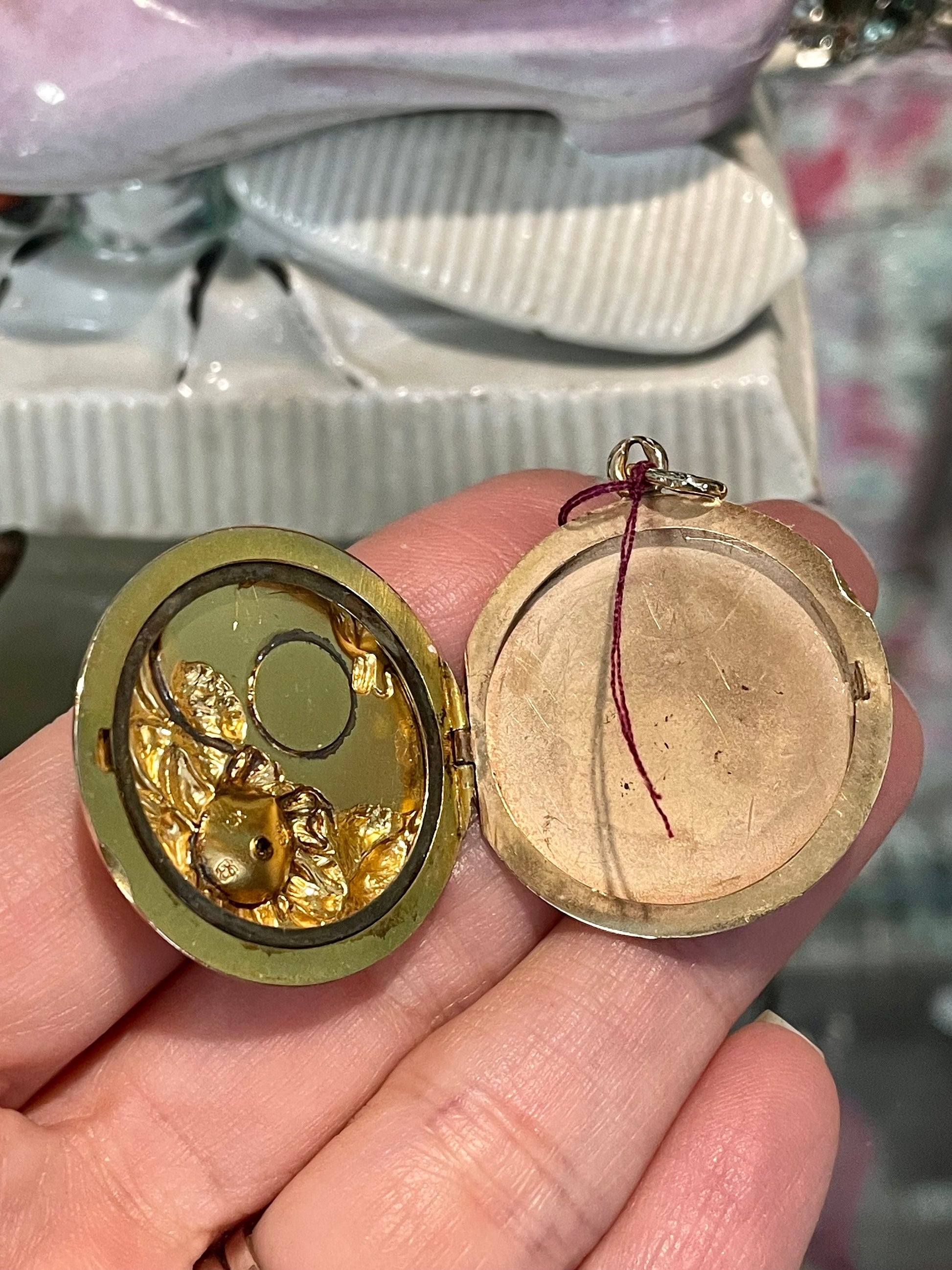 10K Yellow Gold Antique Art Nouveau Floral Diamond Round Locket