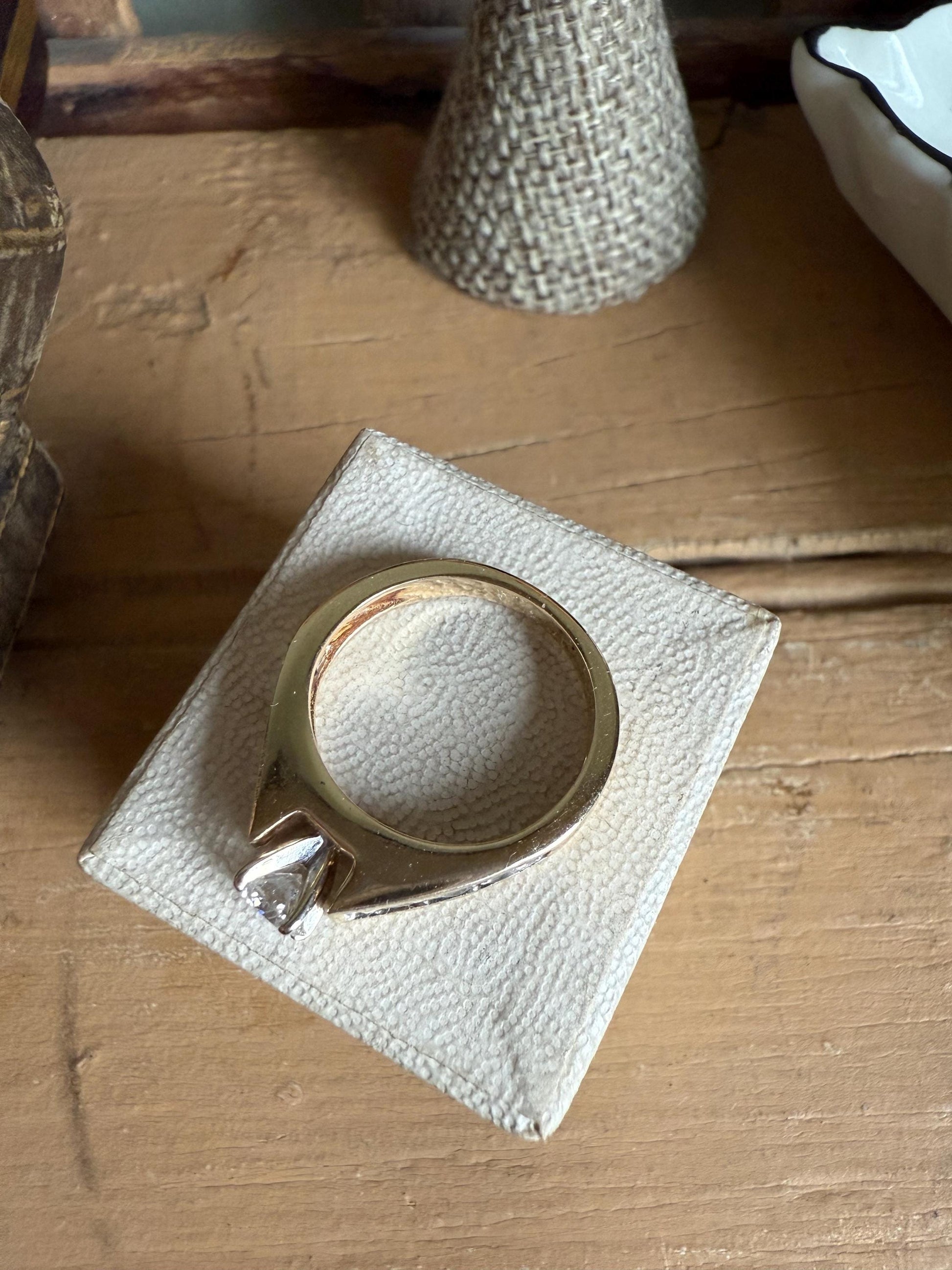Its 4.70 mm wide and the diamond sits up off the finger 7.45 mm. 3.9 grams