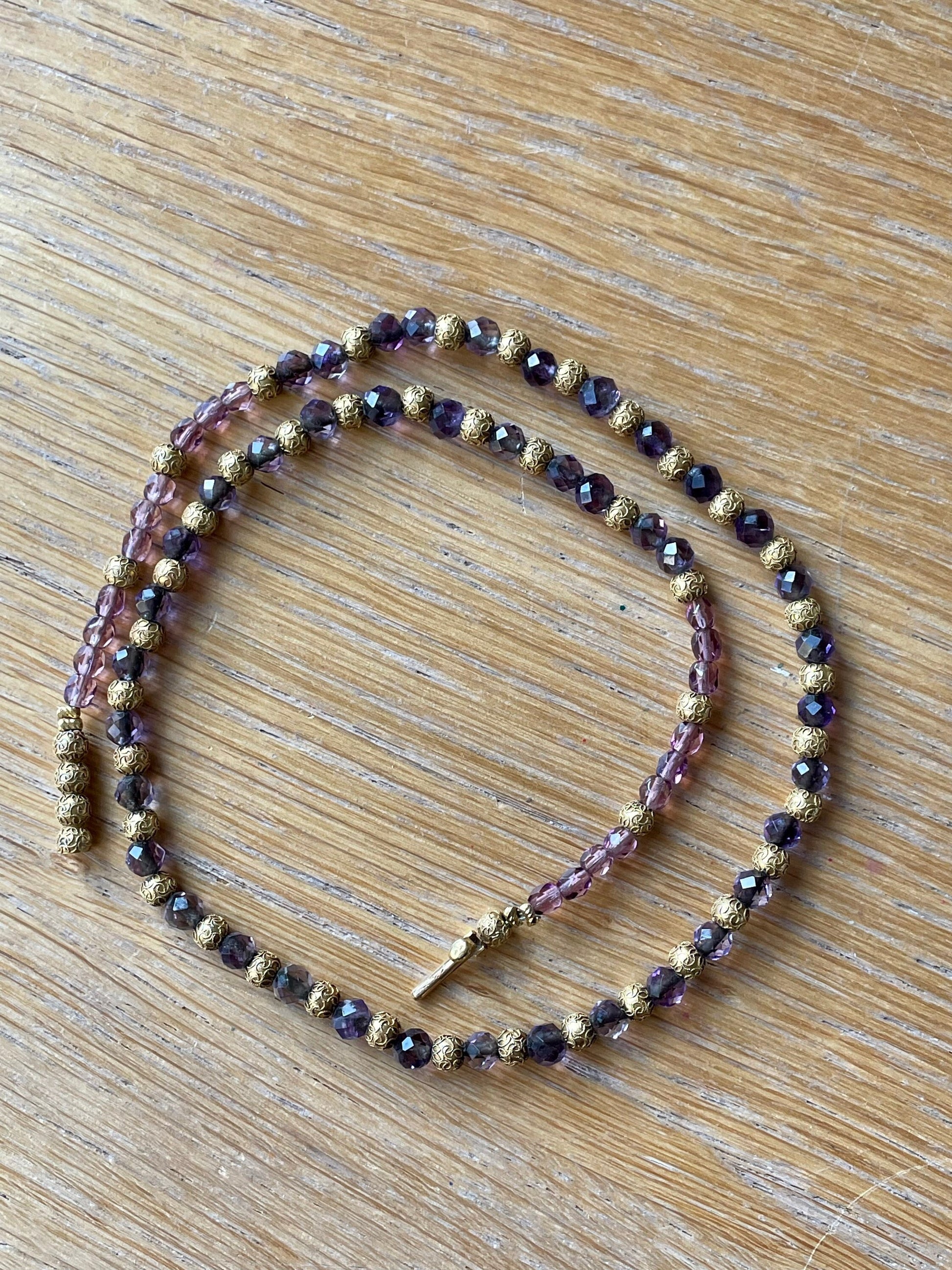 14K Yellow Gold Amethyst Etruscan Revival Bead and Amethyst Bead Necklace