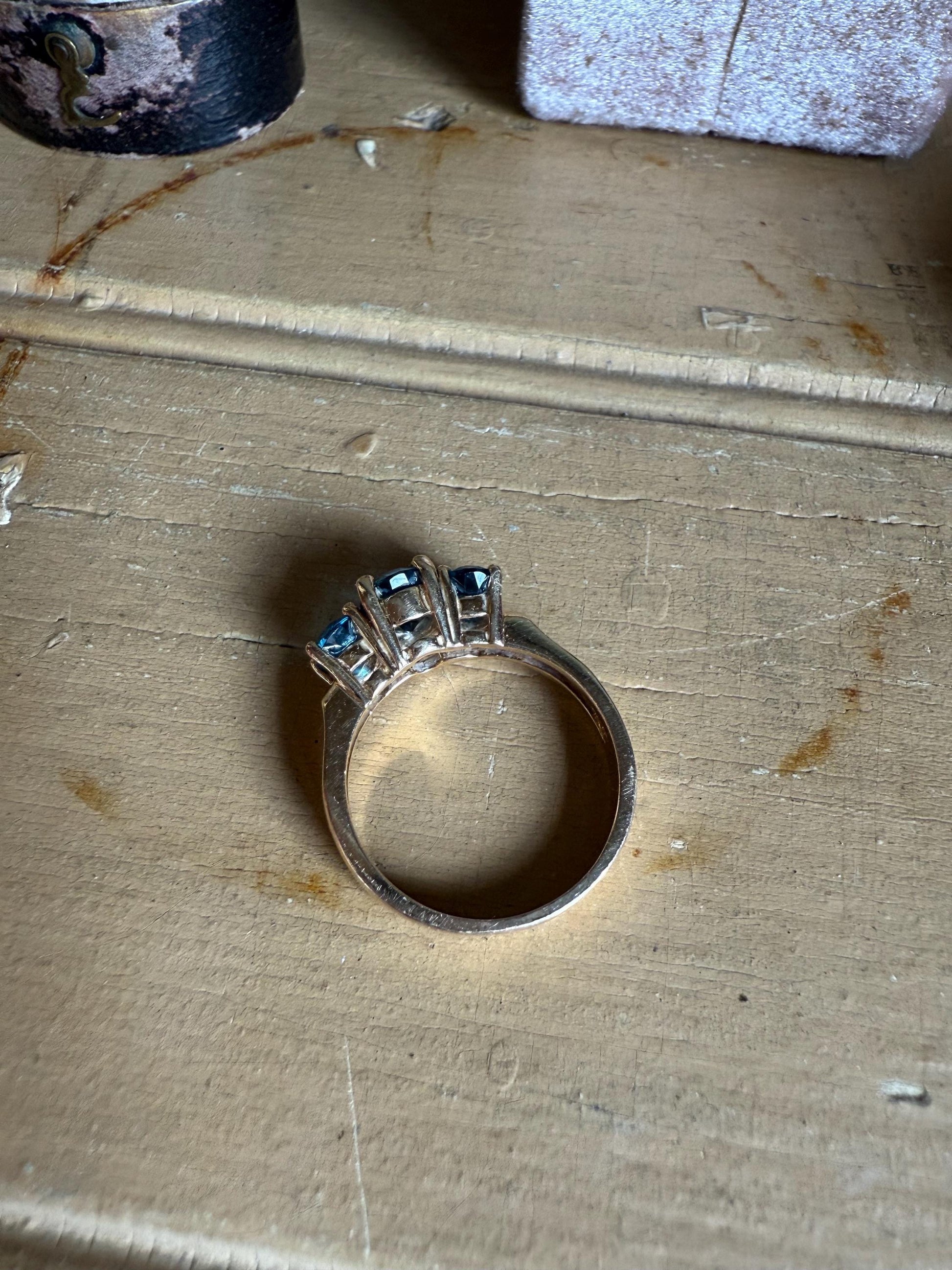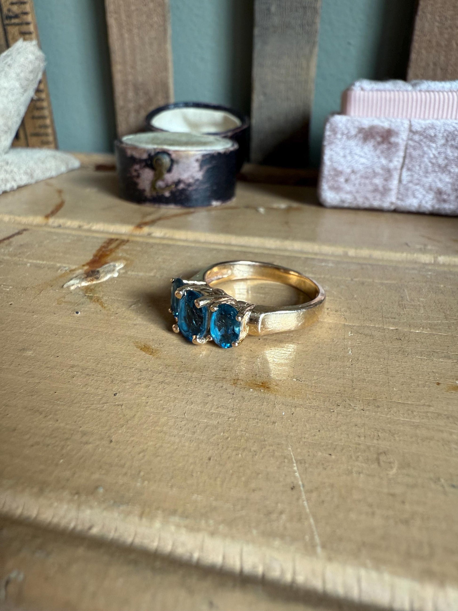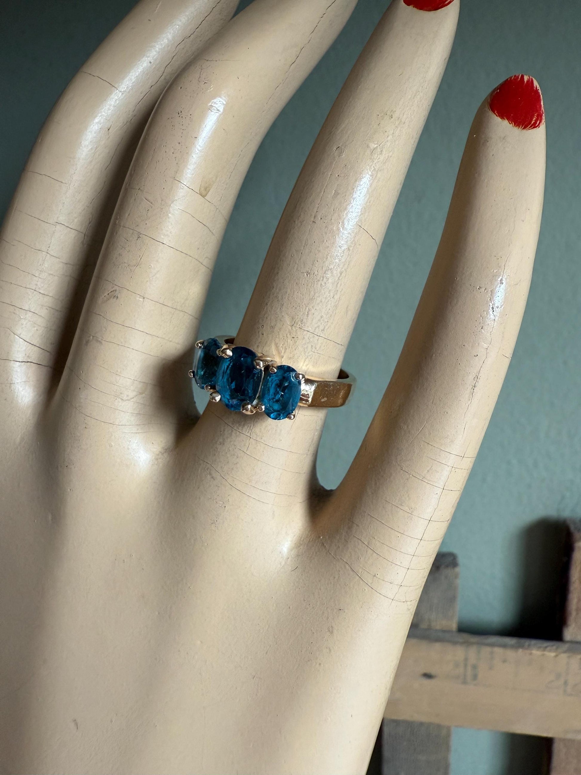 14K Yellow Gold Three Oval Cut London Blue Topaz Ring
