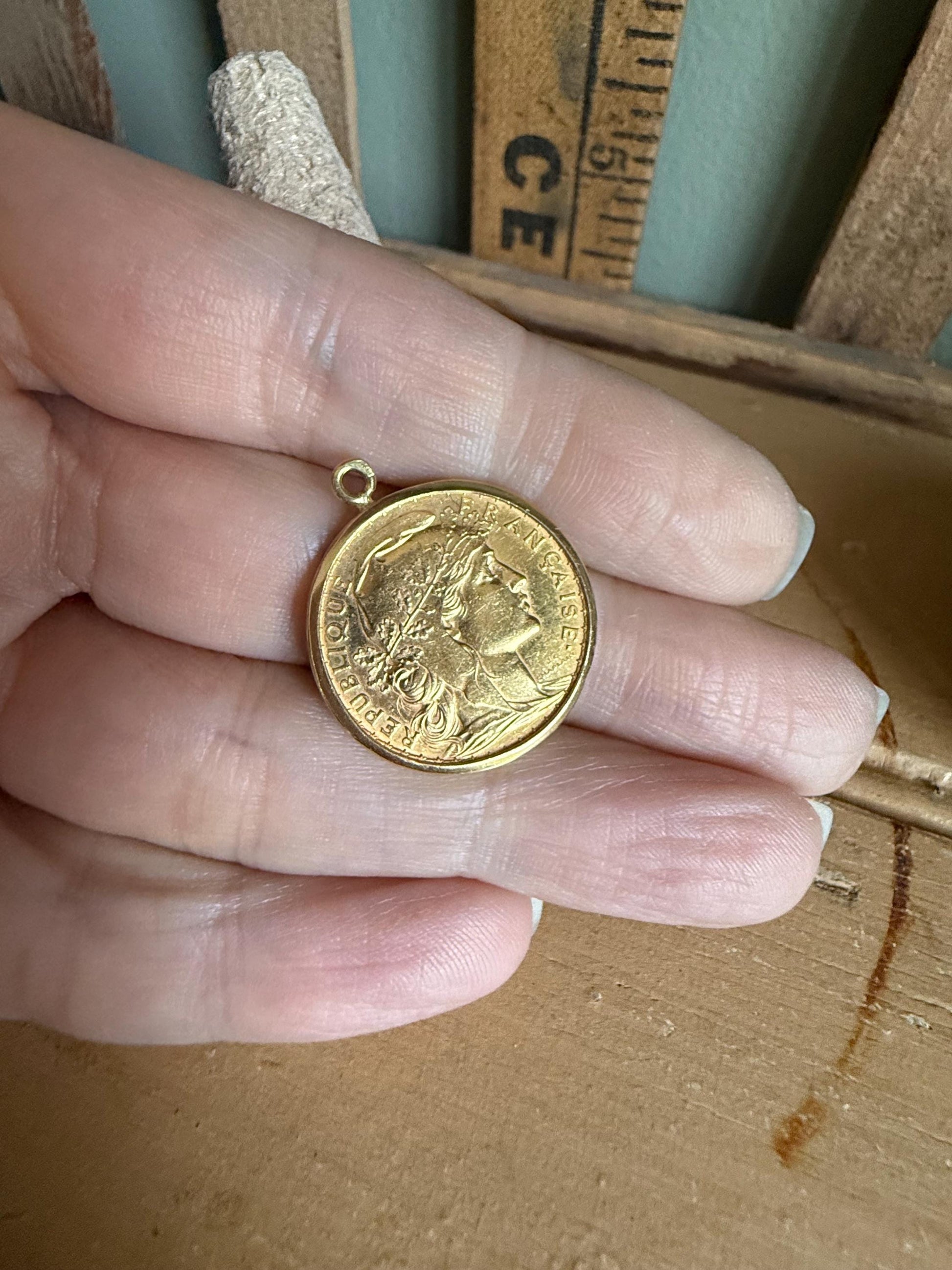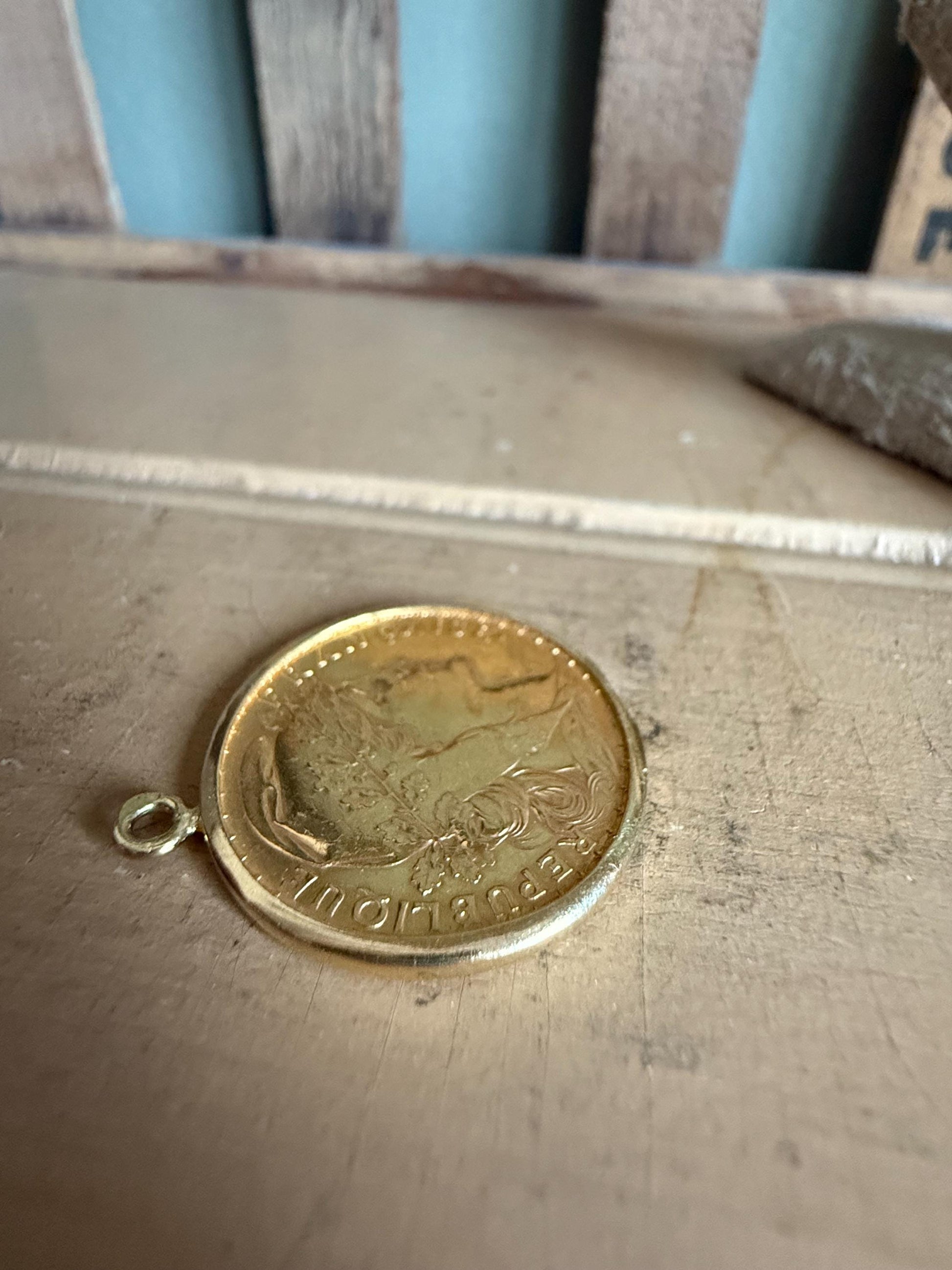 1910 20 Frances Rooster Gold Coin 18K Pendant