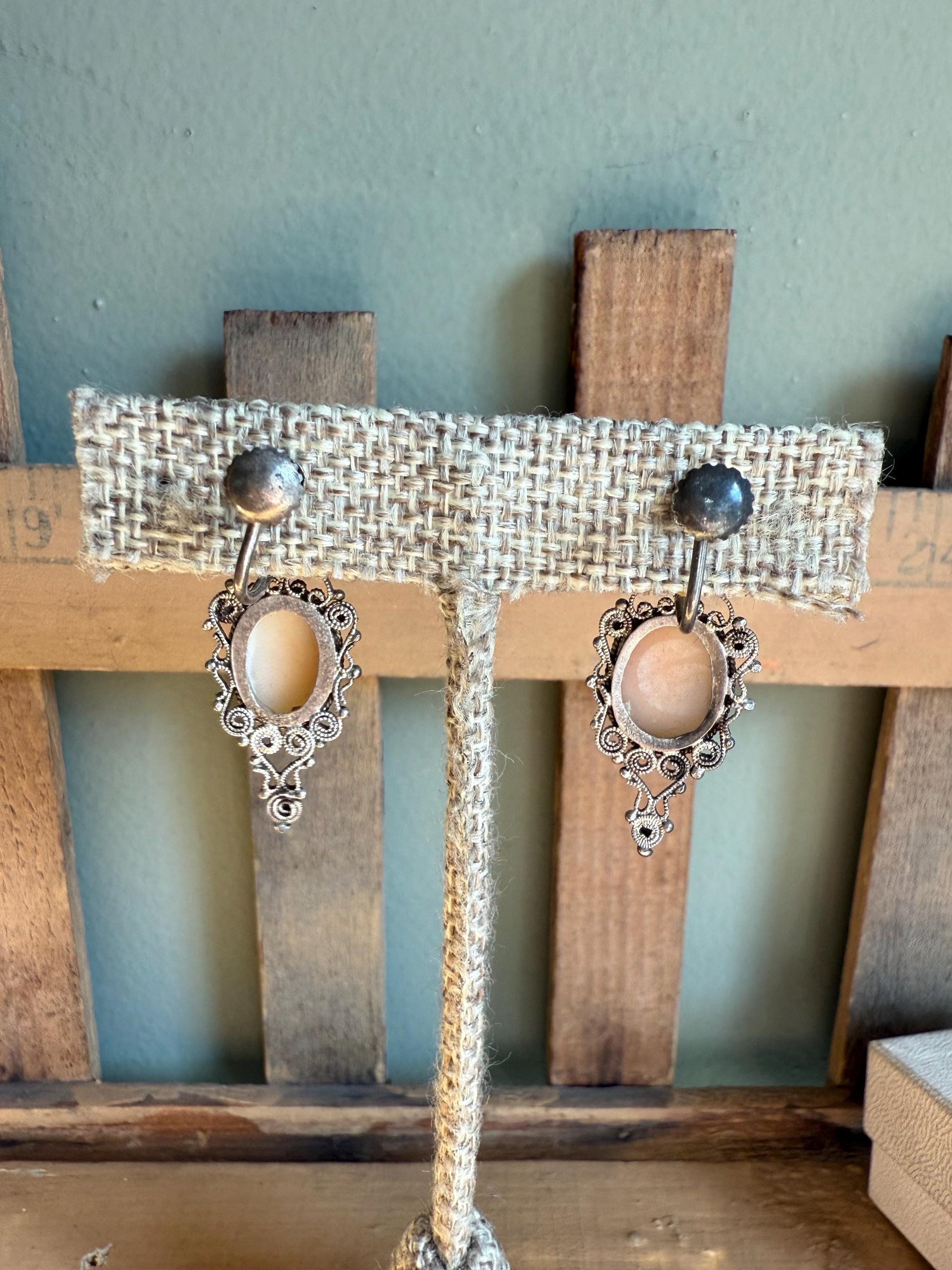 1930-1940 900 Silver Hand Carved Cameo Dangle Earrings