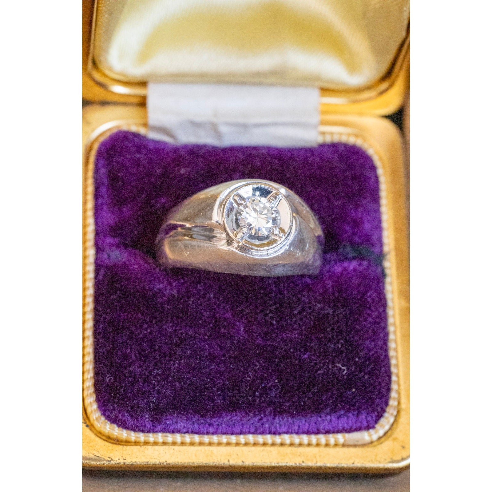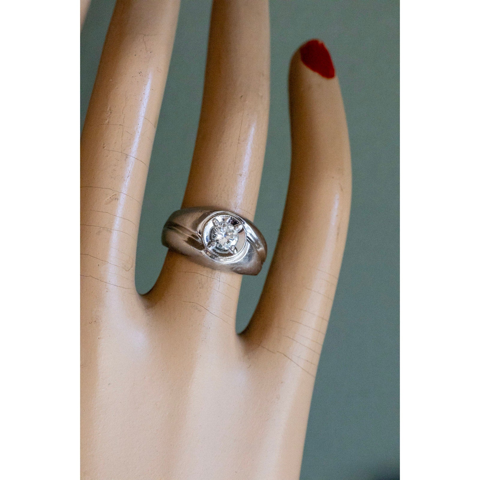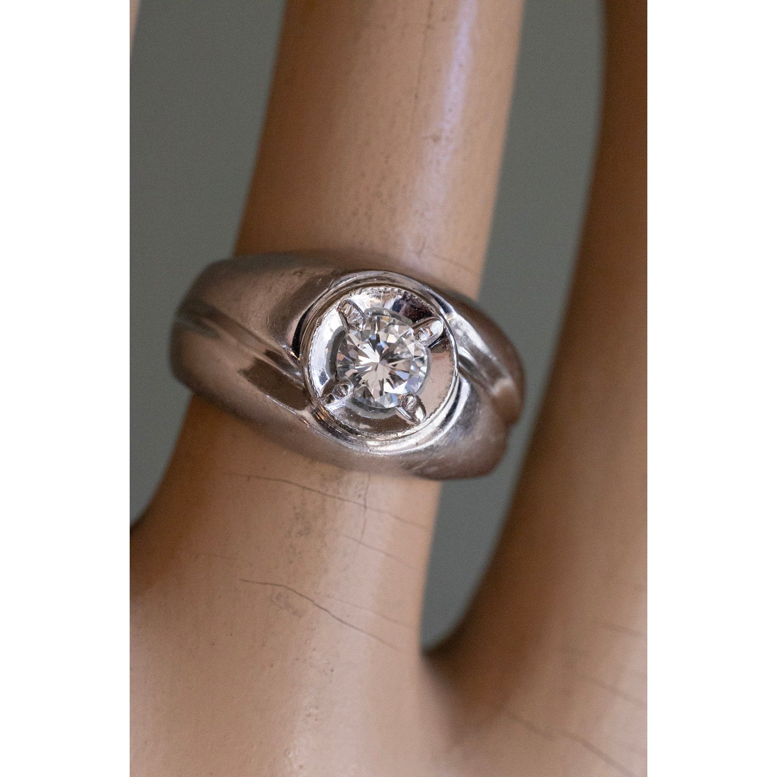 1950's Mid 20th Century 14K White Gold Approx. .50 ct Natural Round Brilliant Cut Diamond Ring