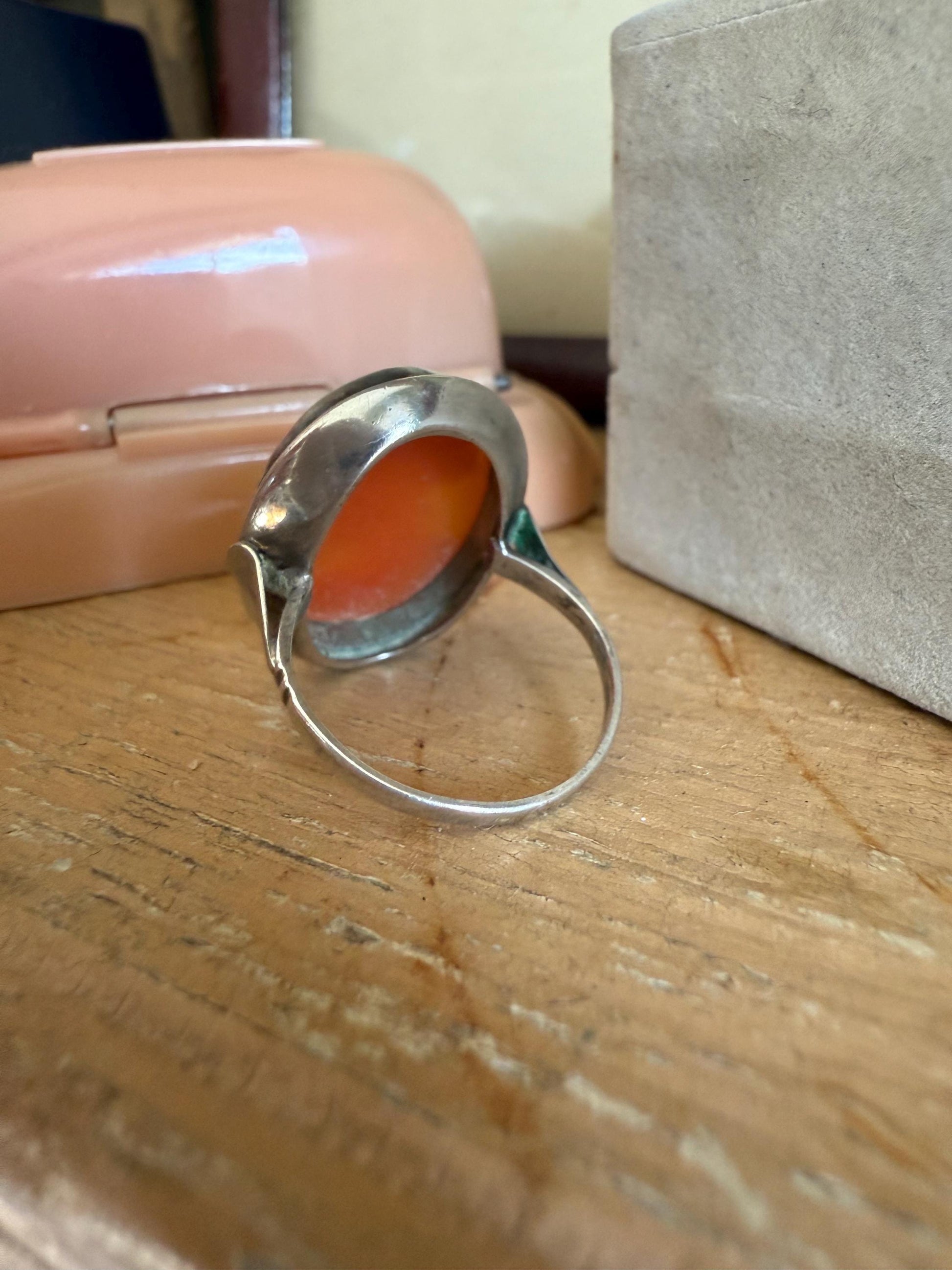 1950'S Mid Century Sterling Silver Shell Cameo Ring