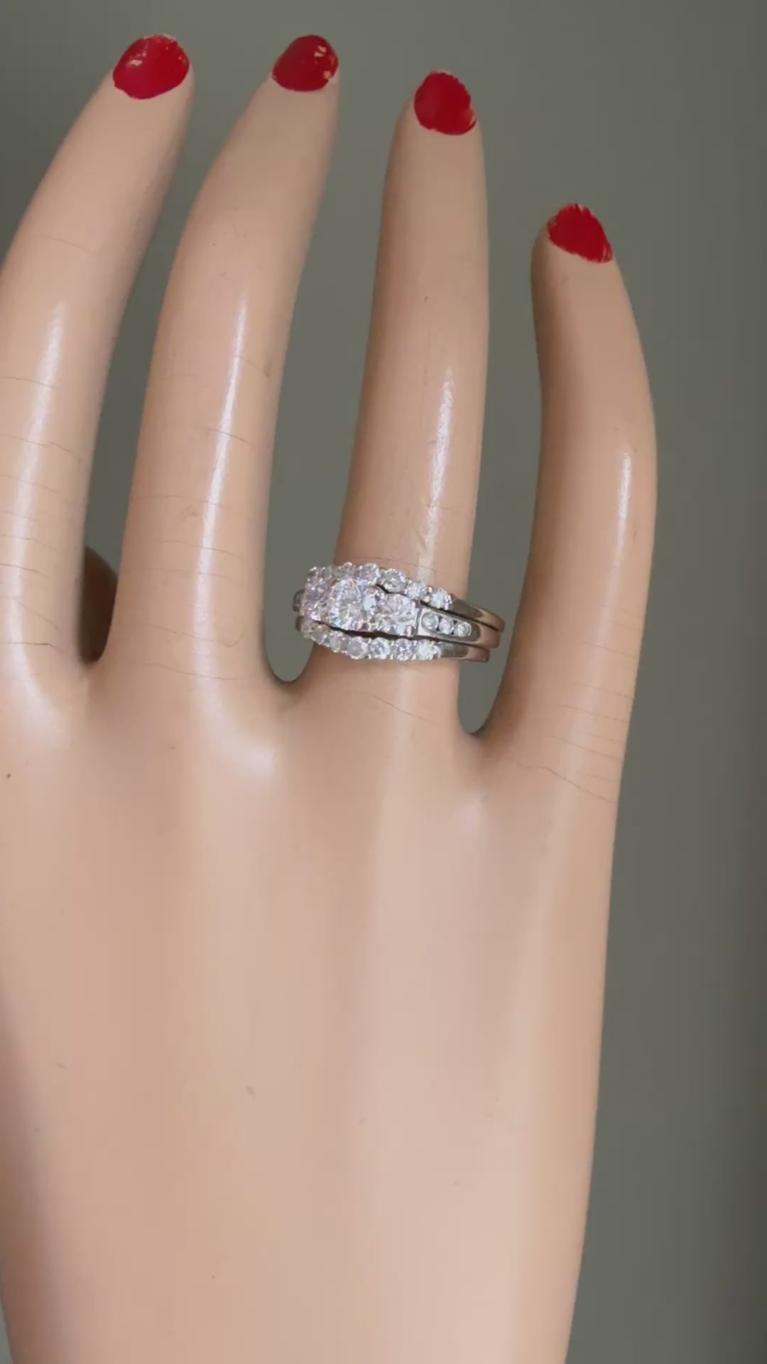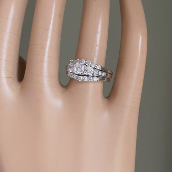A 14K White Gold Past, Present, Future Natural Diamond Ring with Two Diamond Bands