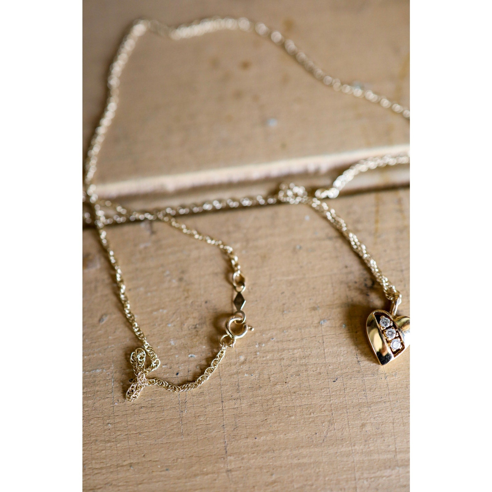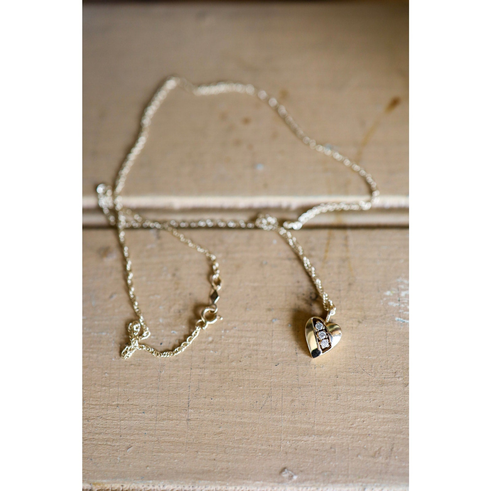 Vintage 14K Gold Diamond Heart Necklace