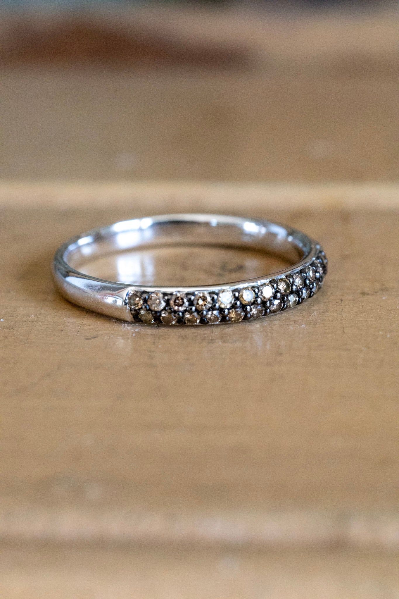 A Vintage 14K White Gold Band Set with Chocolate Natural Diamonds
