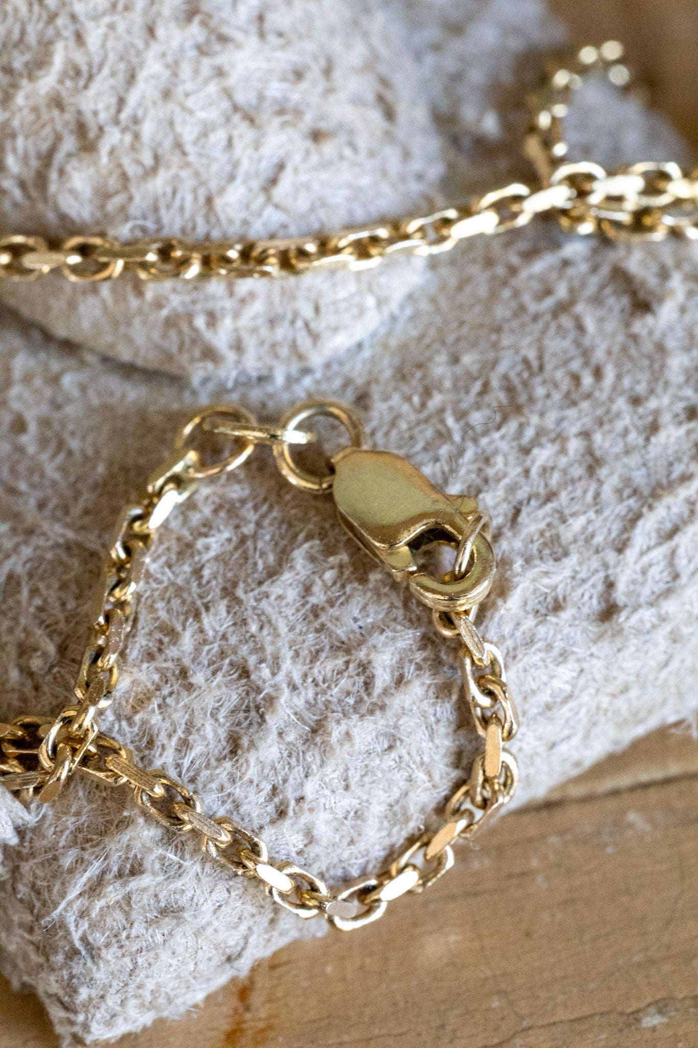 The chain is optional and is 14k yellow gold cable link 20" length with lobster clasp. 6.2 grams. Heavy and strong-can be puchased separately. If you want a shorter chain or different link reach out we have a few to chose from.