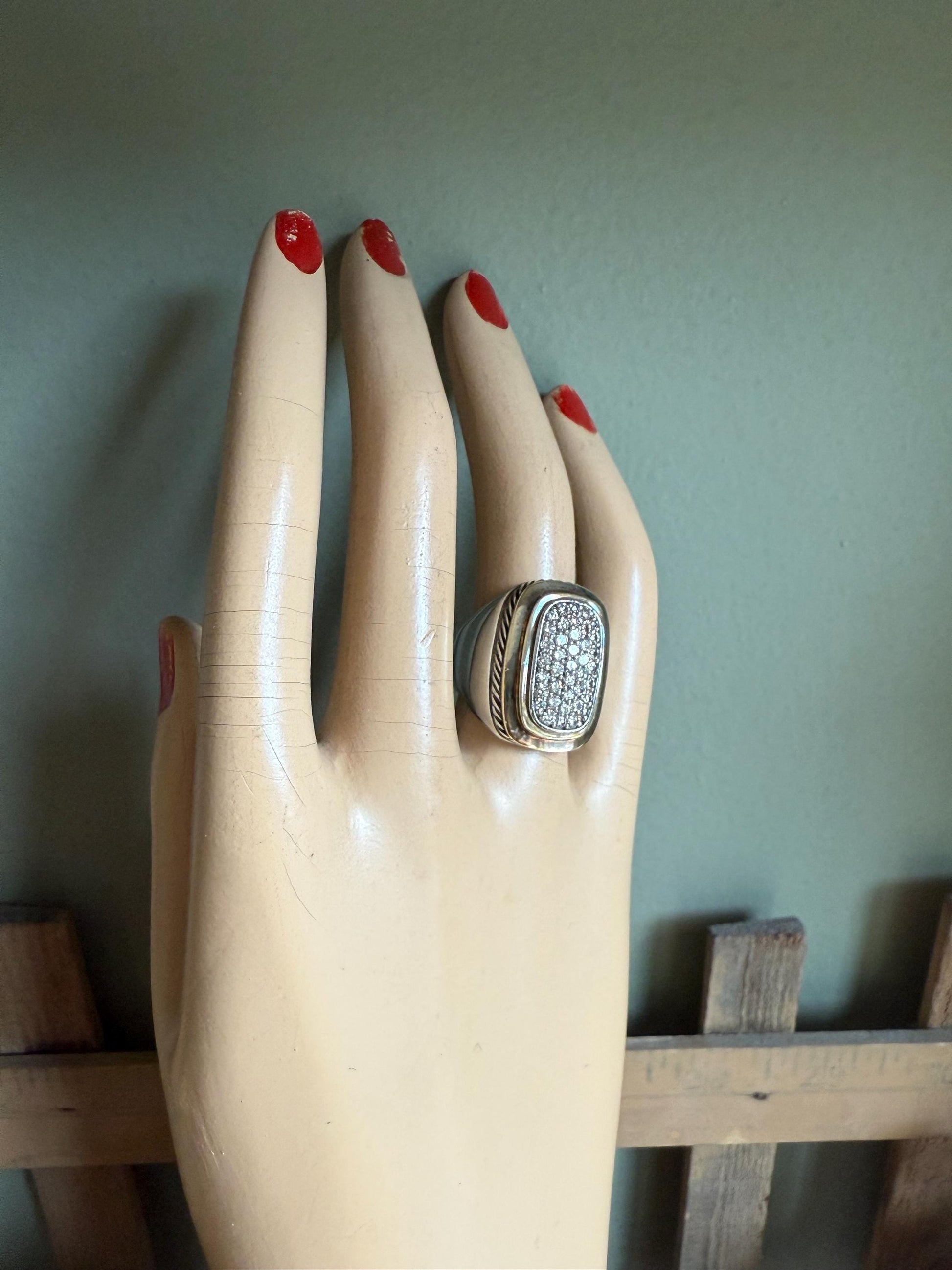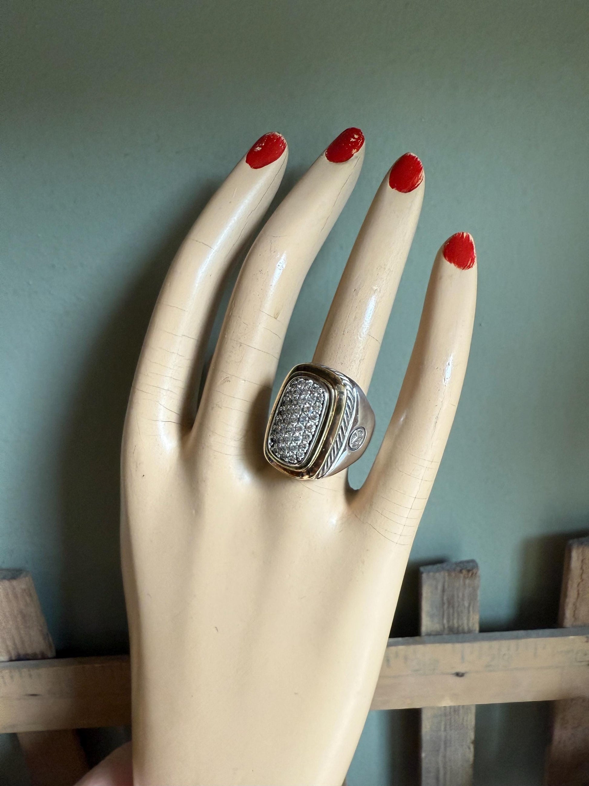 A Vintage David Yurman Albion Diamond Fine Pave Sterling 18K Ring Size 6.5