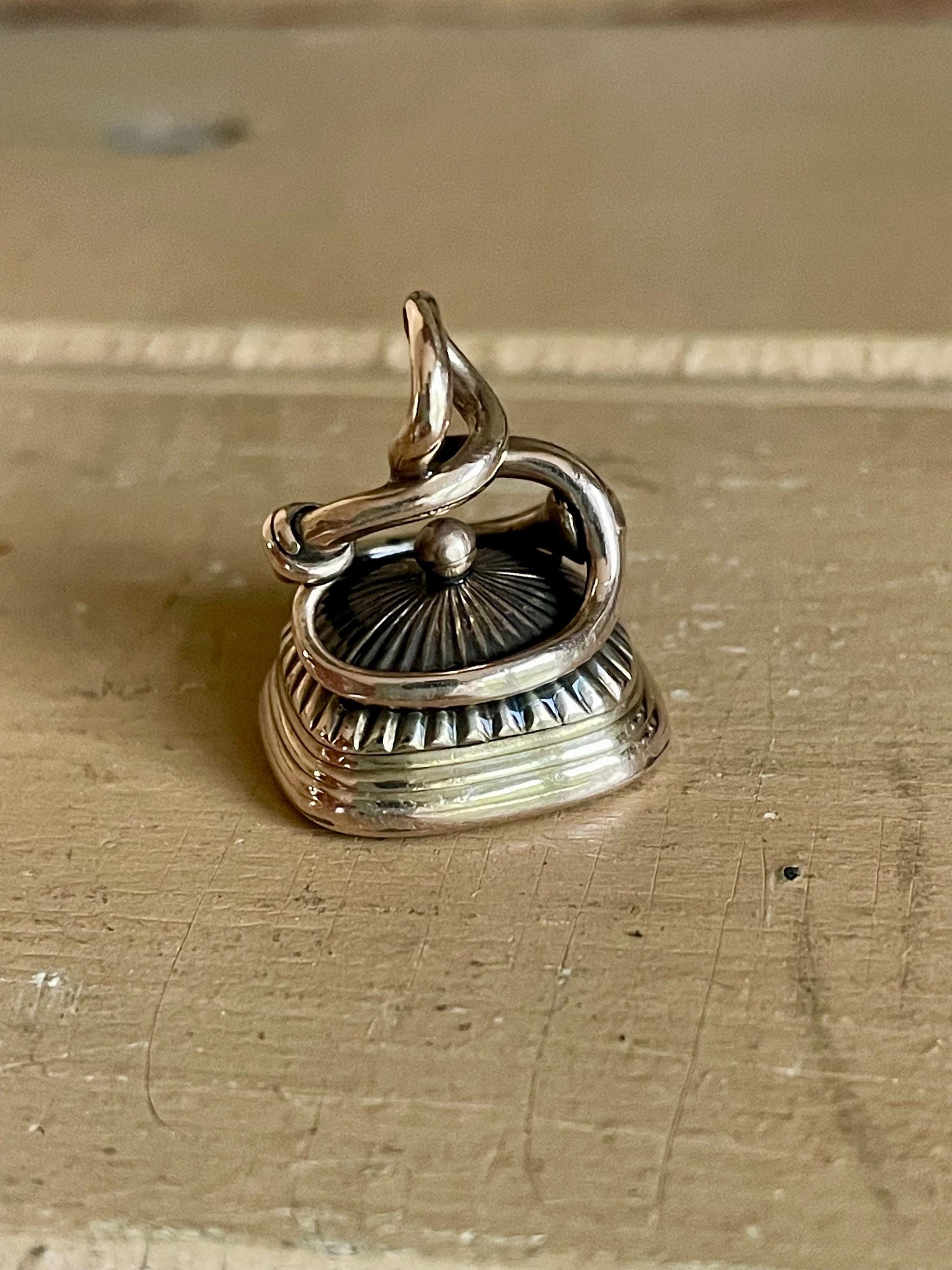 Antique 1840 14K Yellow Gold Snake Topped Watch Fob with Agate Carved Bottom