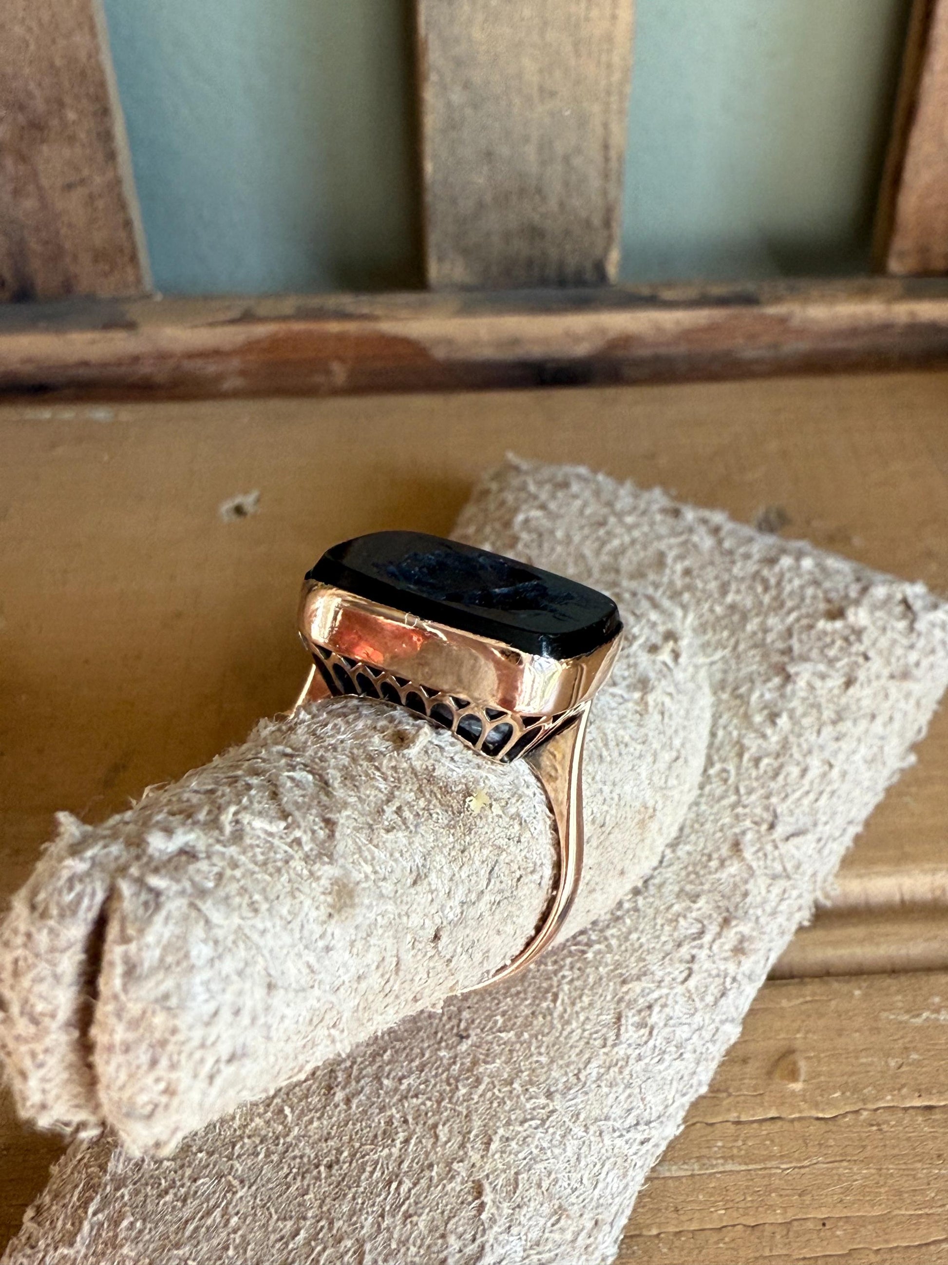 Antique Beautifully Carved Sardonyx Intagalio Ring in 14K Slight Rose Gold