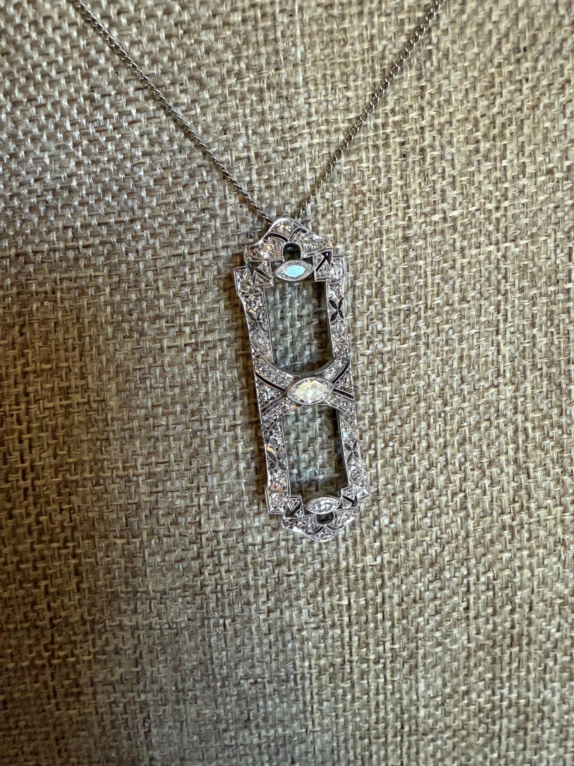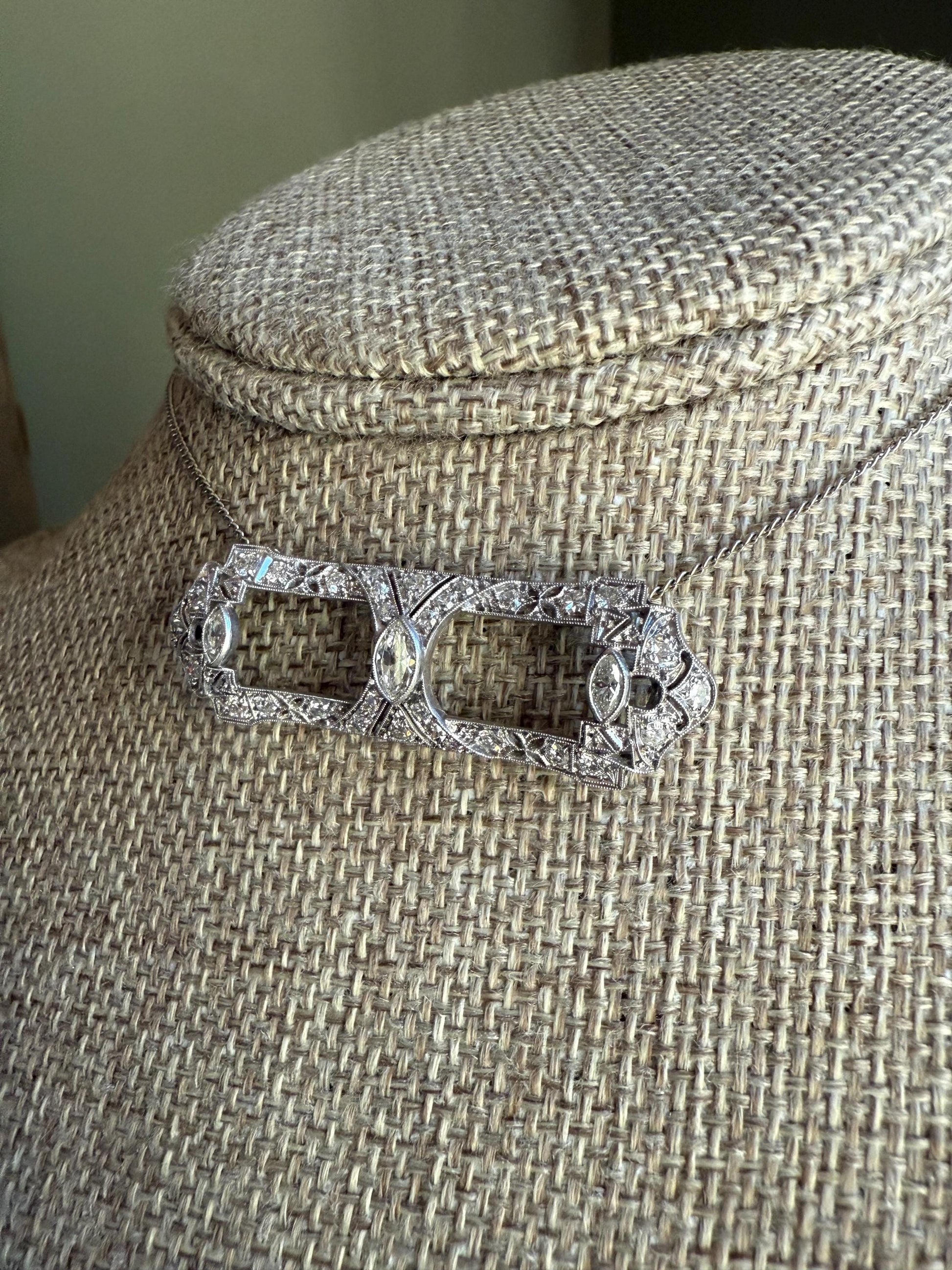Art Deco Platinum Diamond Converted Brooch to Pendant -You Can Wear Two Ways