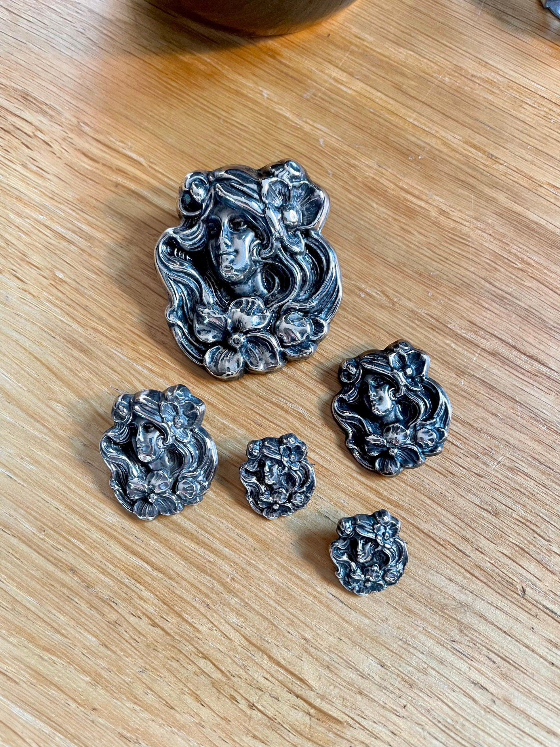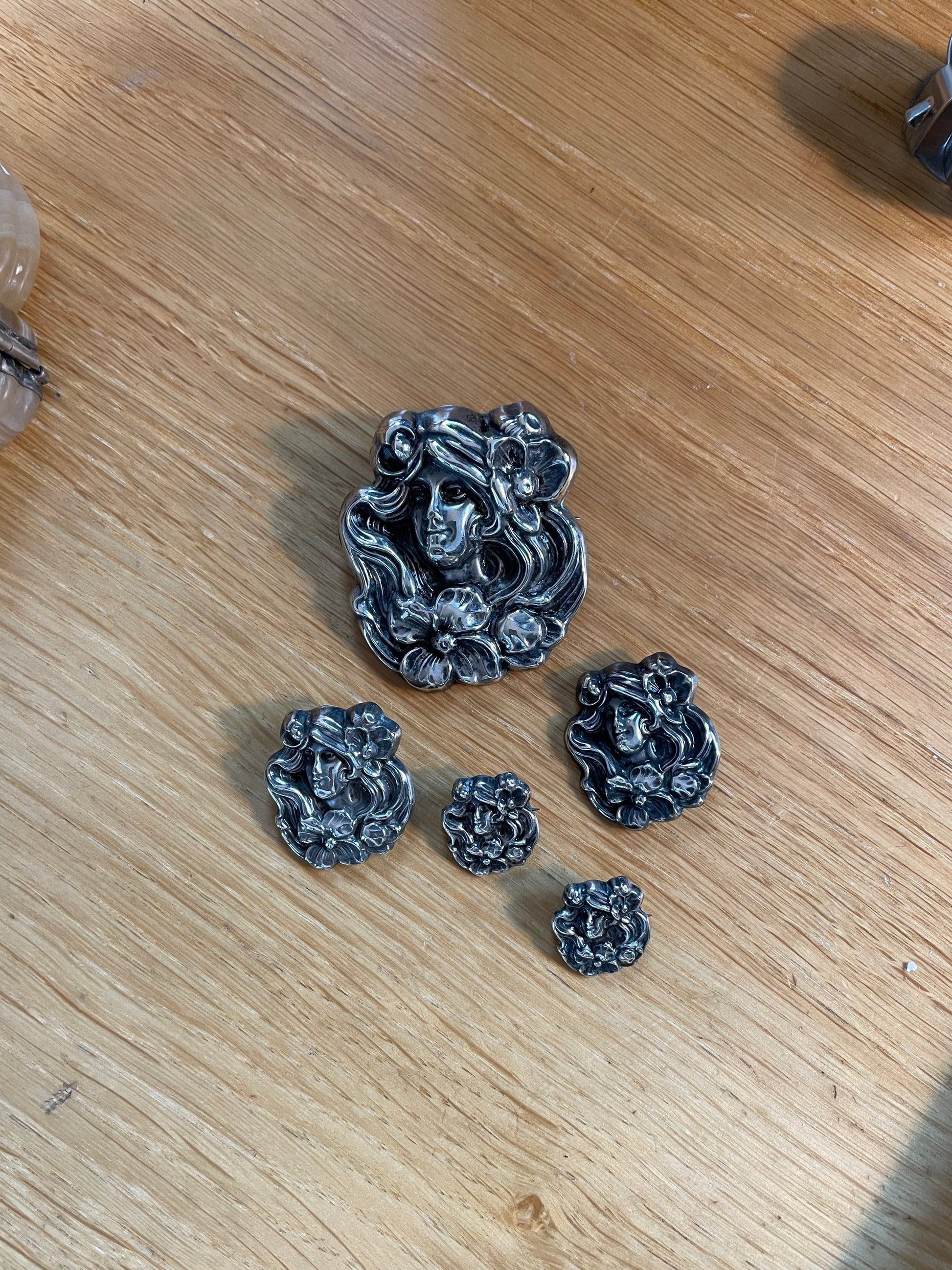 I've never seen a set of matching Art Nouveau brooch before.