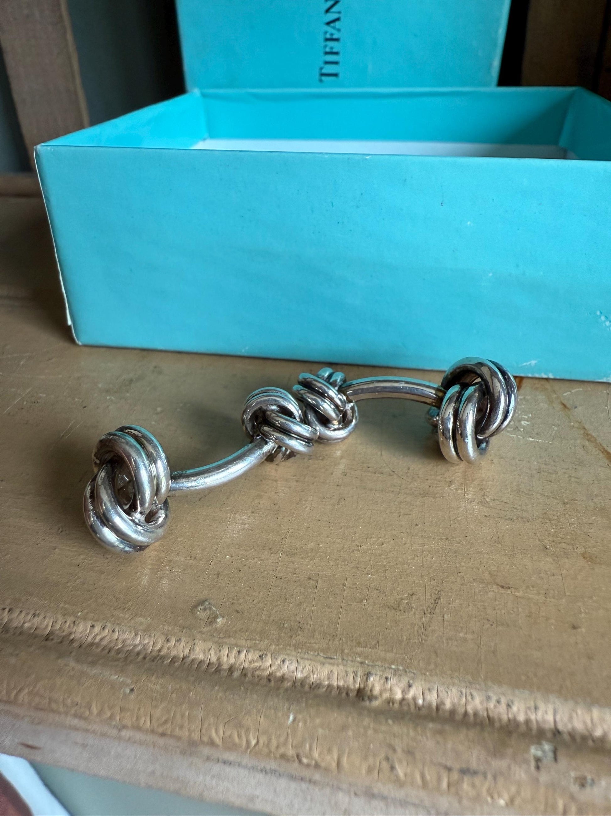 Authentic Vintage Tiffany & Co Double Knot Sterling Silver Cufflinks in Box and Pouch