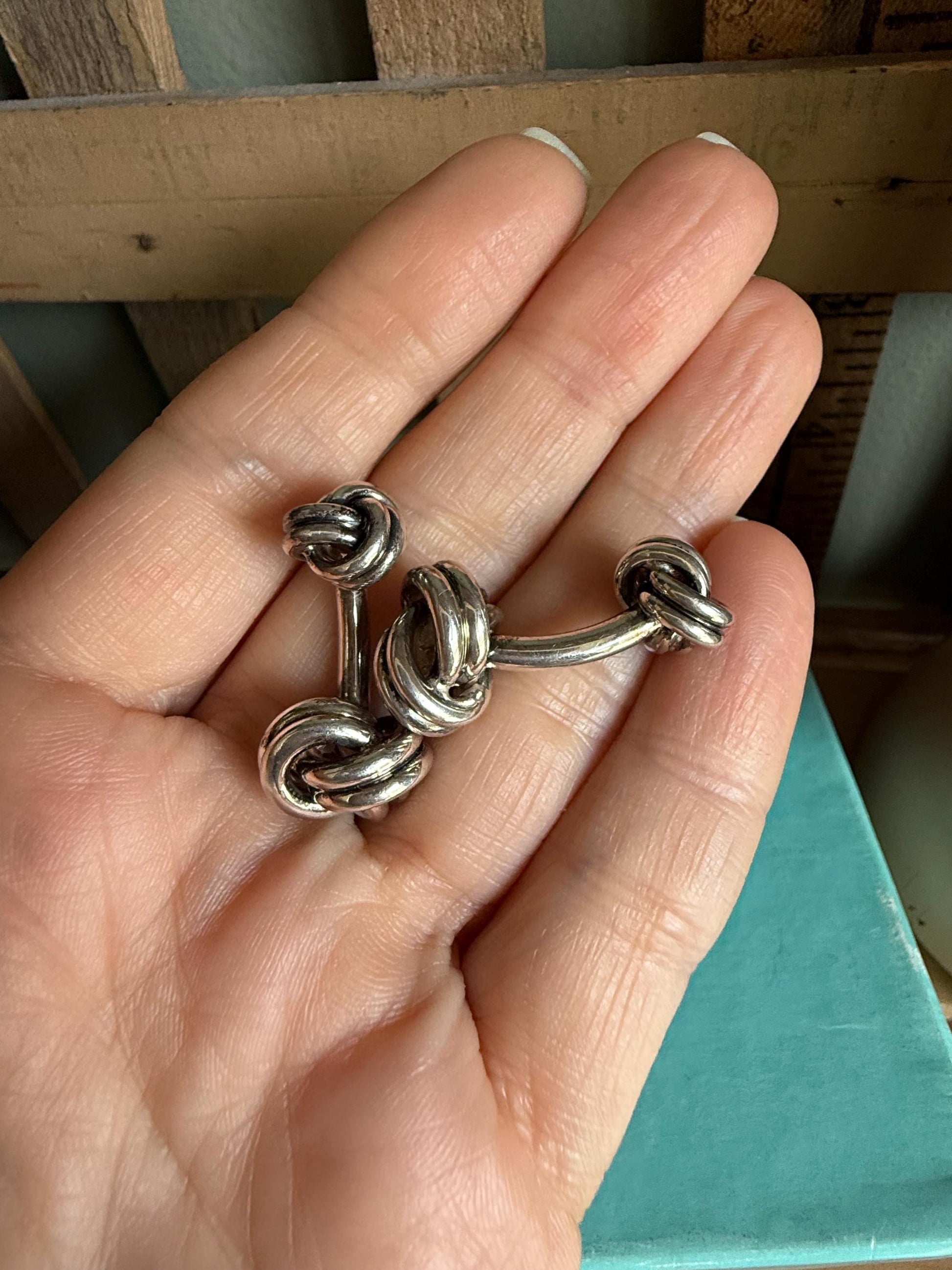 These are authentic vintage Tiffany & Co sterling silver double knot cufflinks. Very good condition with the pouch and box. These are solid and well made.