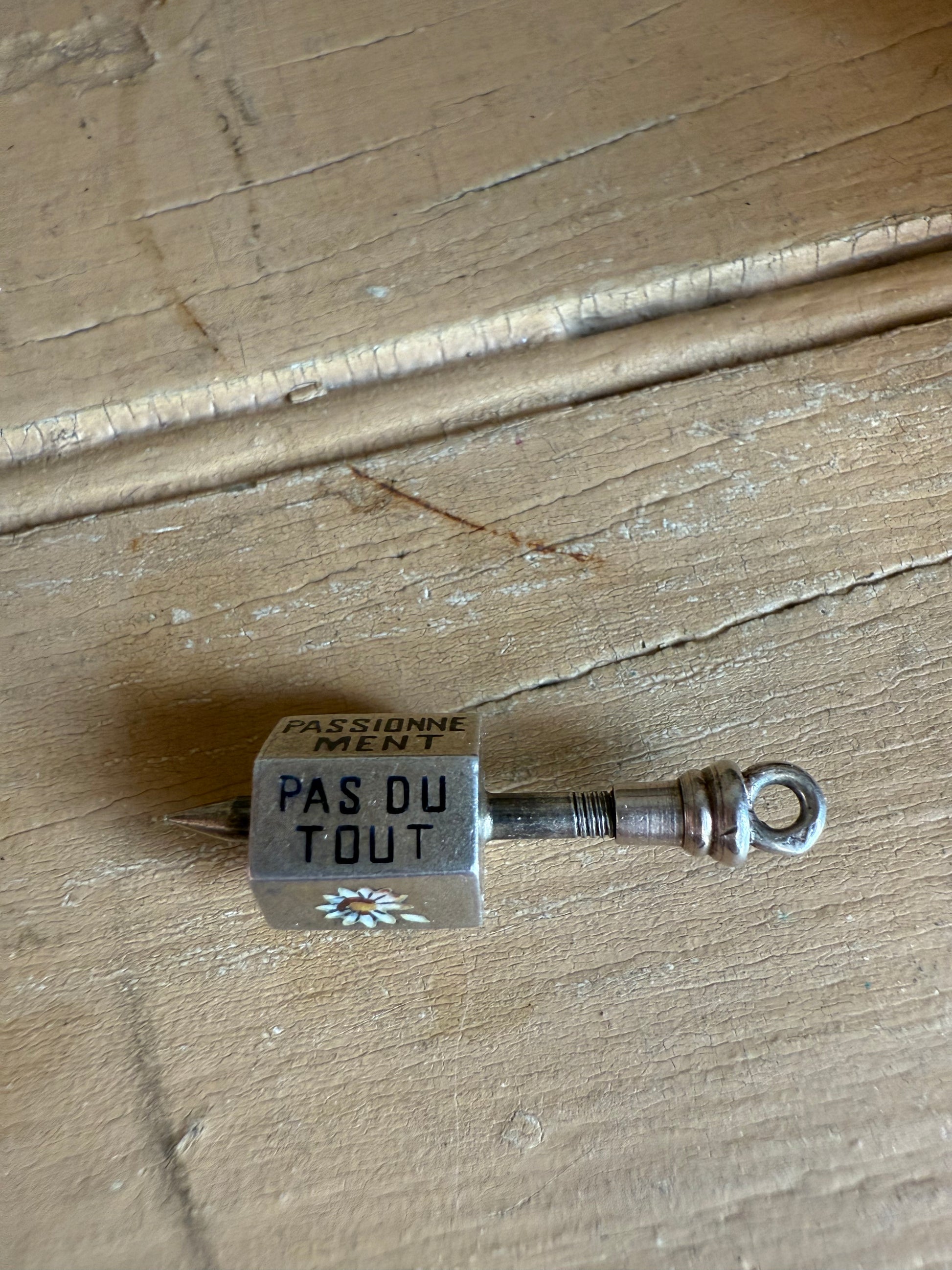 Rare Silver Enameled French He Love Me, He Loves Me Not Spinner Charm Pendant