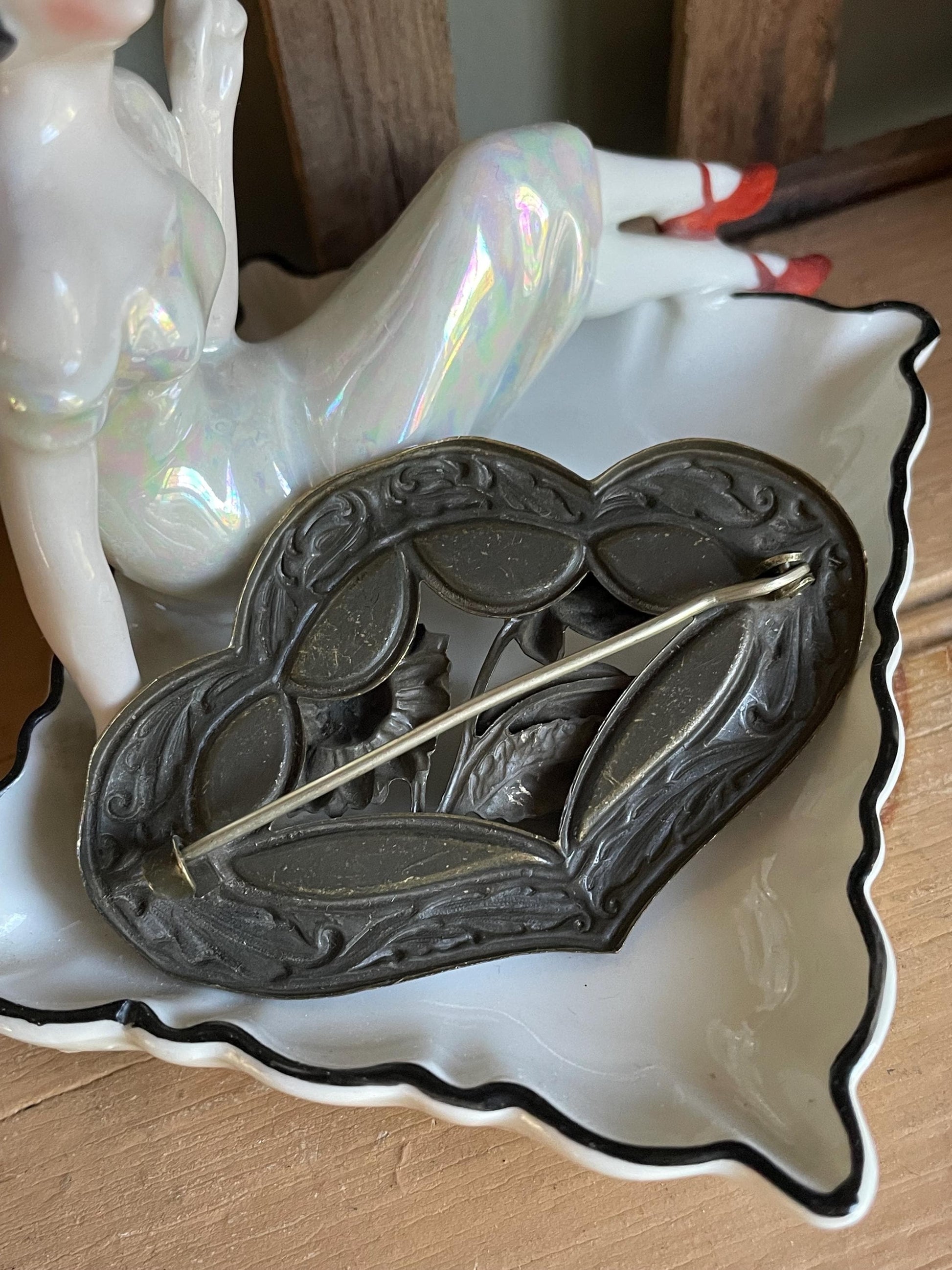 c1900 Antique Edwardian Faceted Glass Stone Floral Sash Brooch