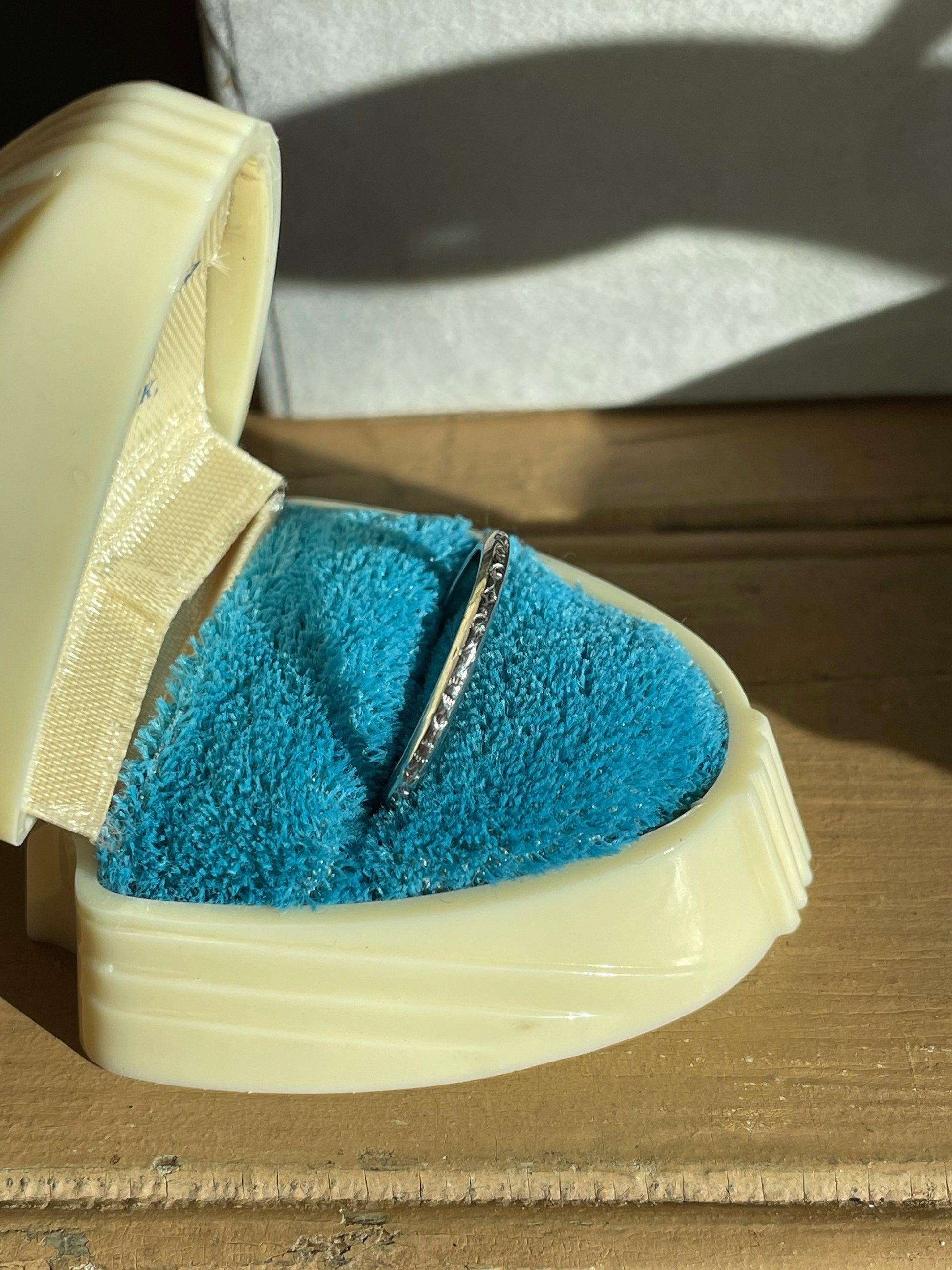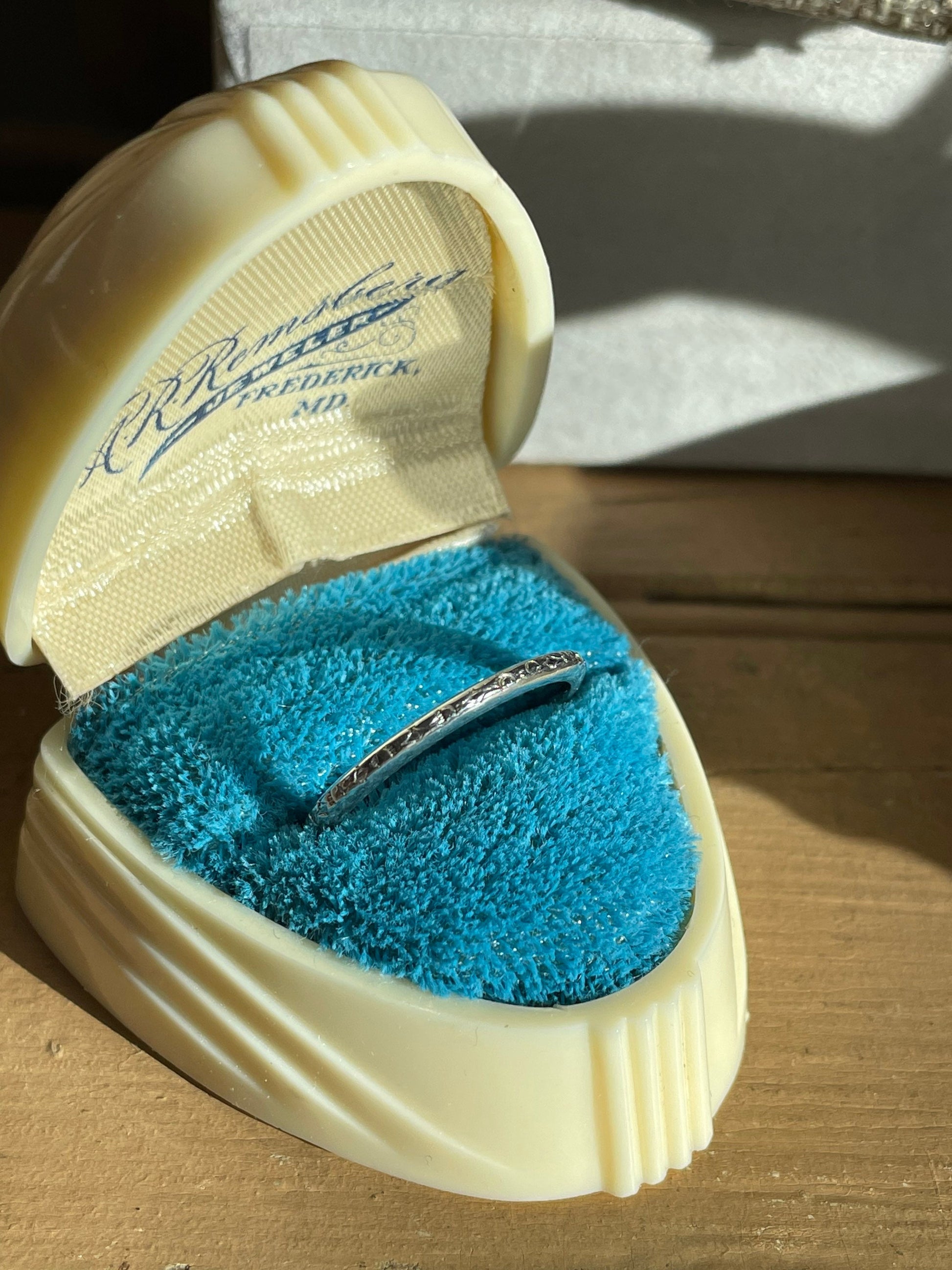 c1920 18K White Gold Engraved Band Ring Art Deco