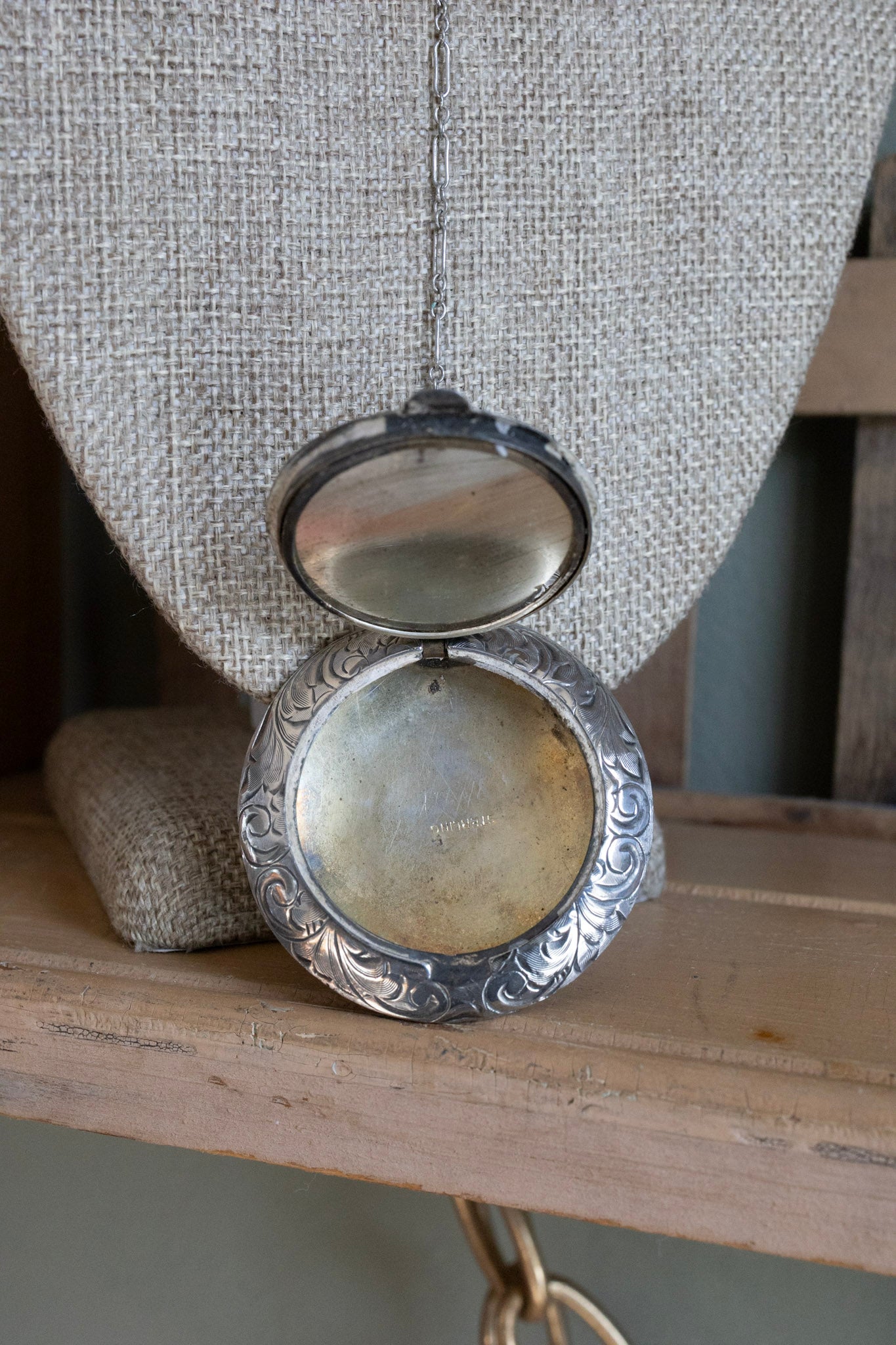 Authentic 1920s Sterling Silver Compact Necklace – Art Deco Era