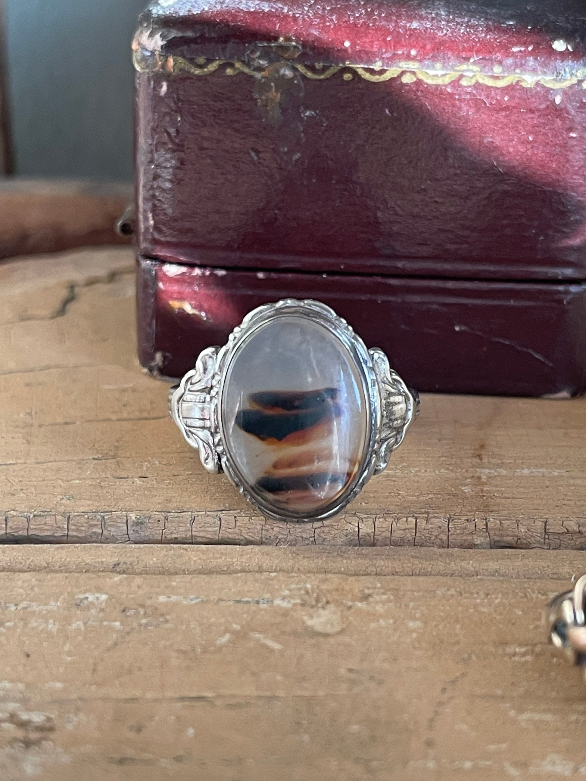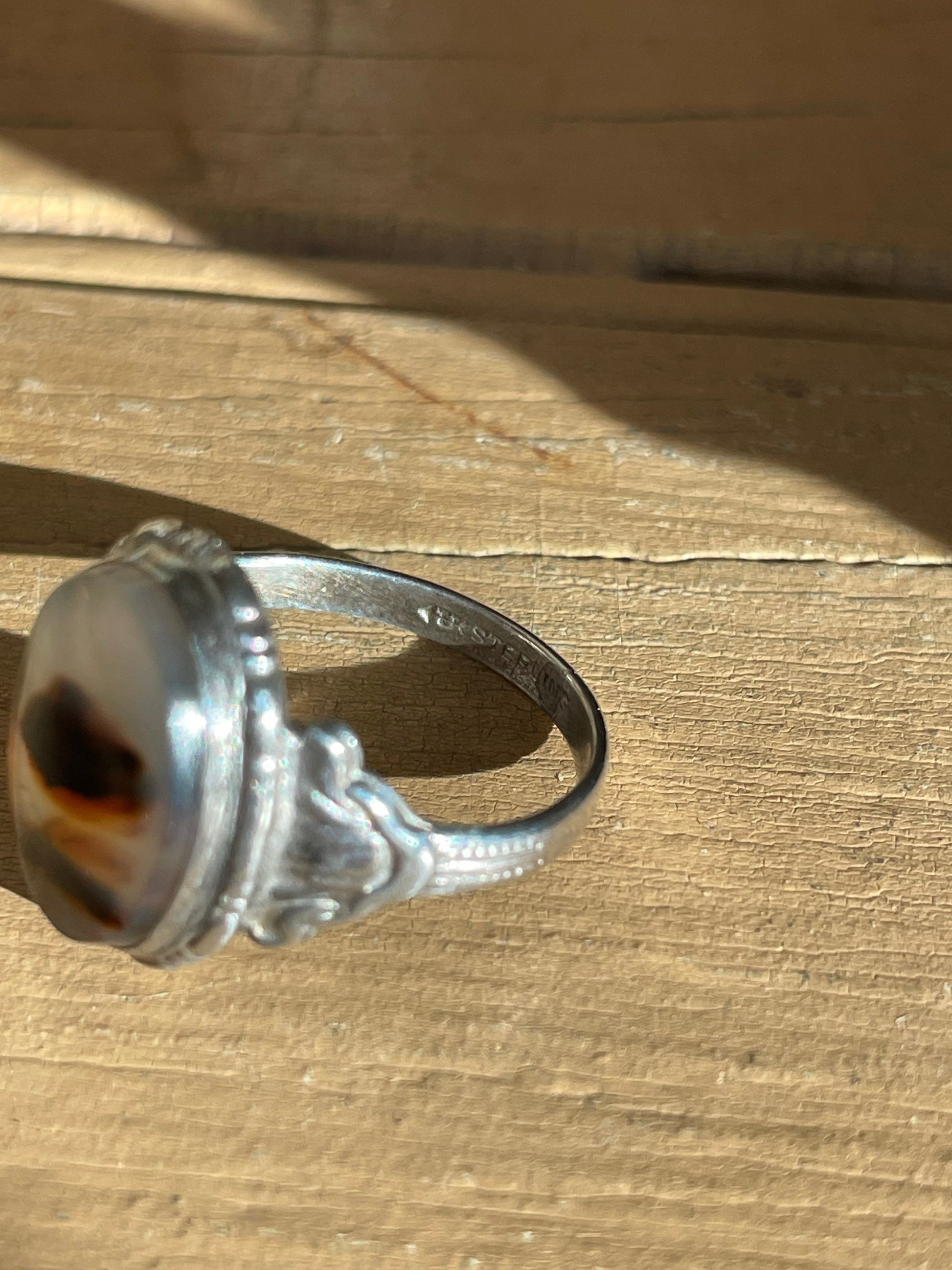 c1920 Early Art Deco Sterling Silver Ring with Oval Agate