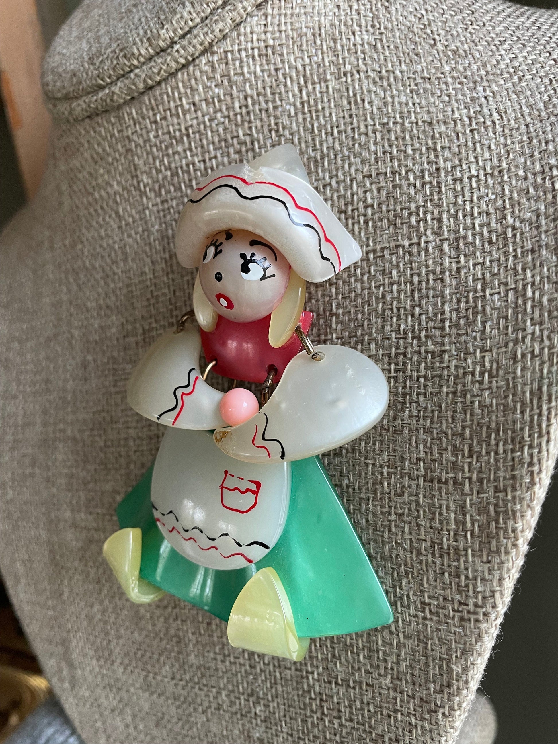 c1930 Early Nylon Dutch Girl Brooch Rare