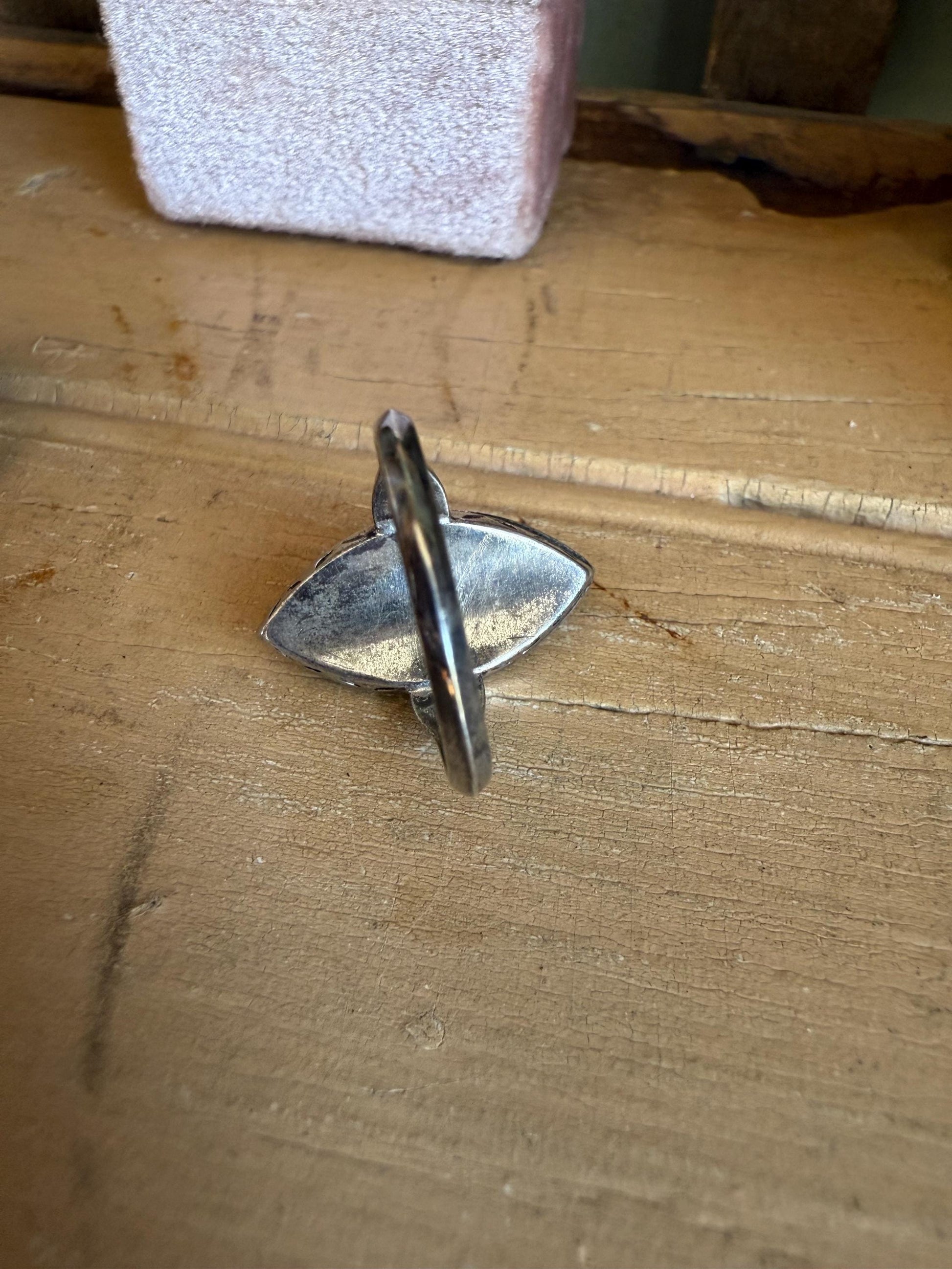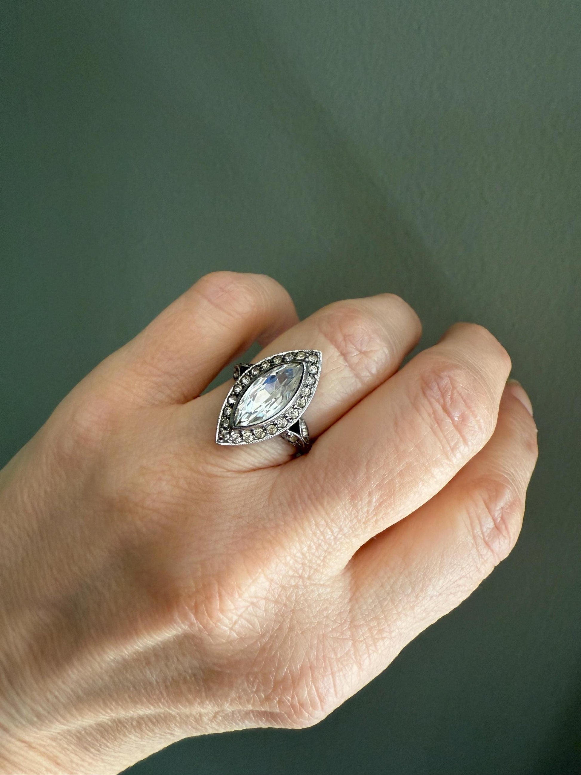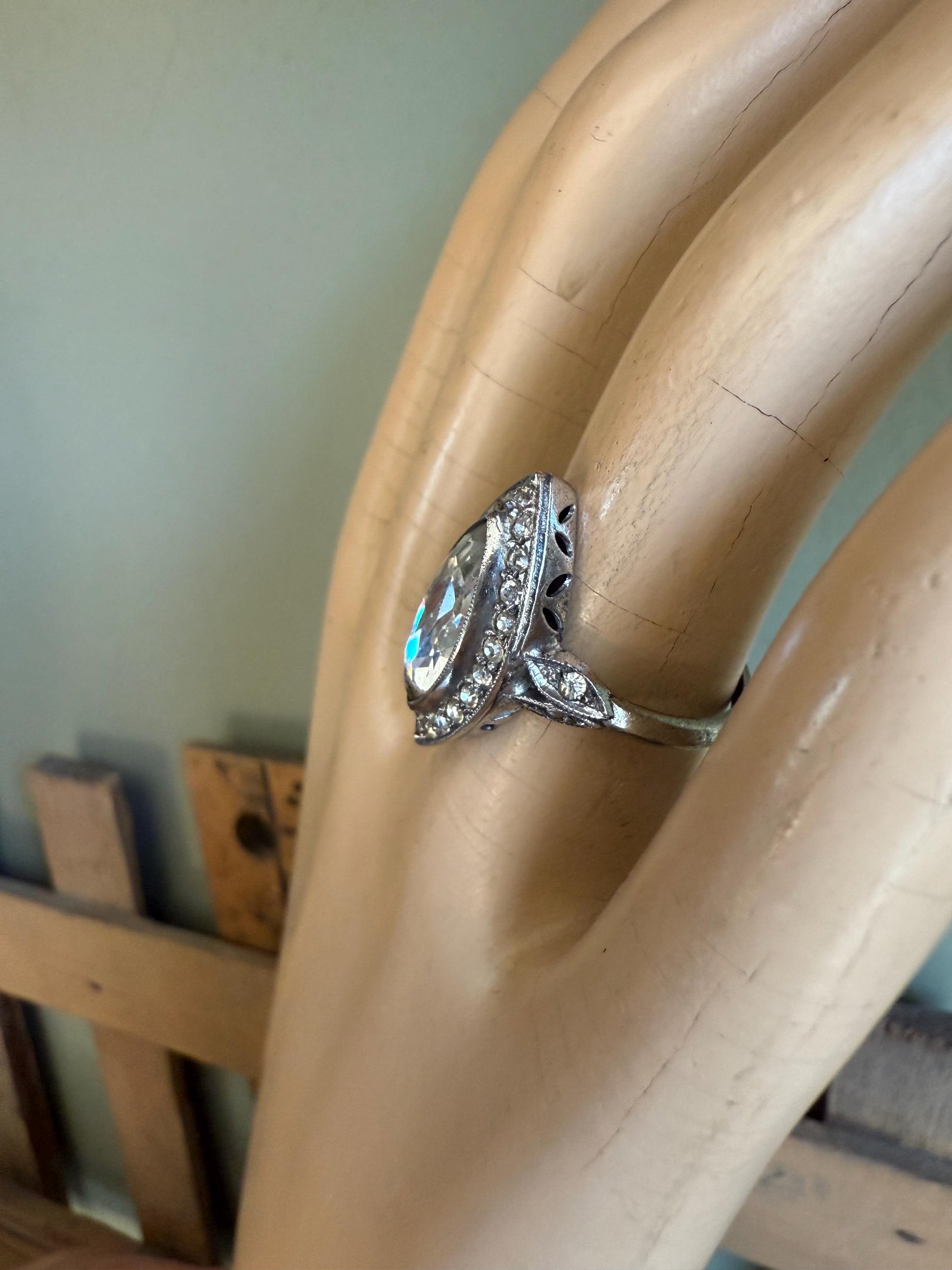c1930 Vintage Art Deco Sterling Silver Marquis Shaped Crystal Ring