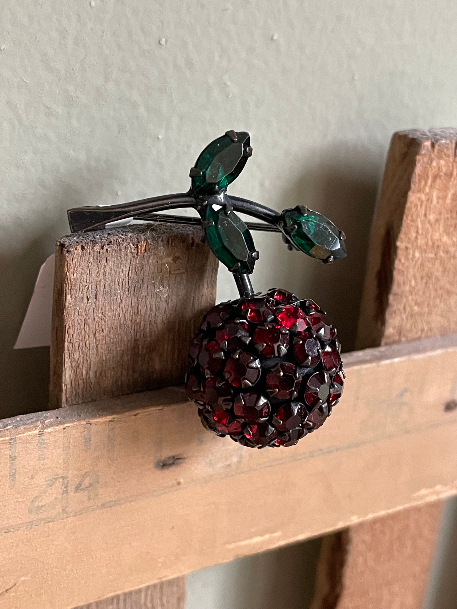 c1950 Warmer Juicy Cherry Rhinestone Brooch