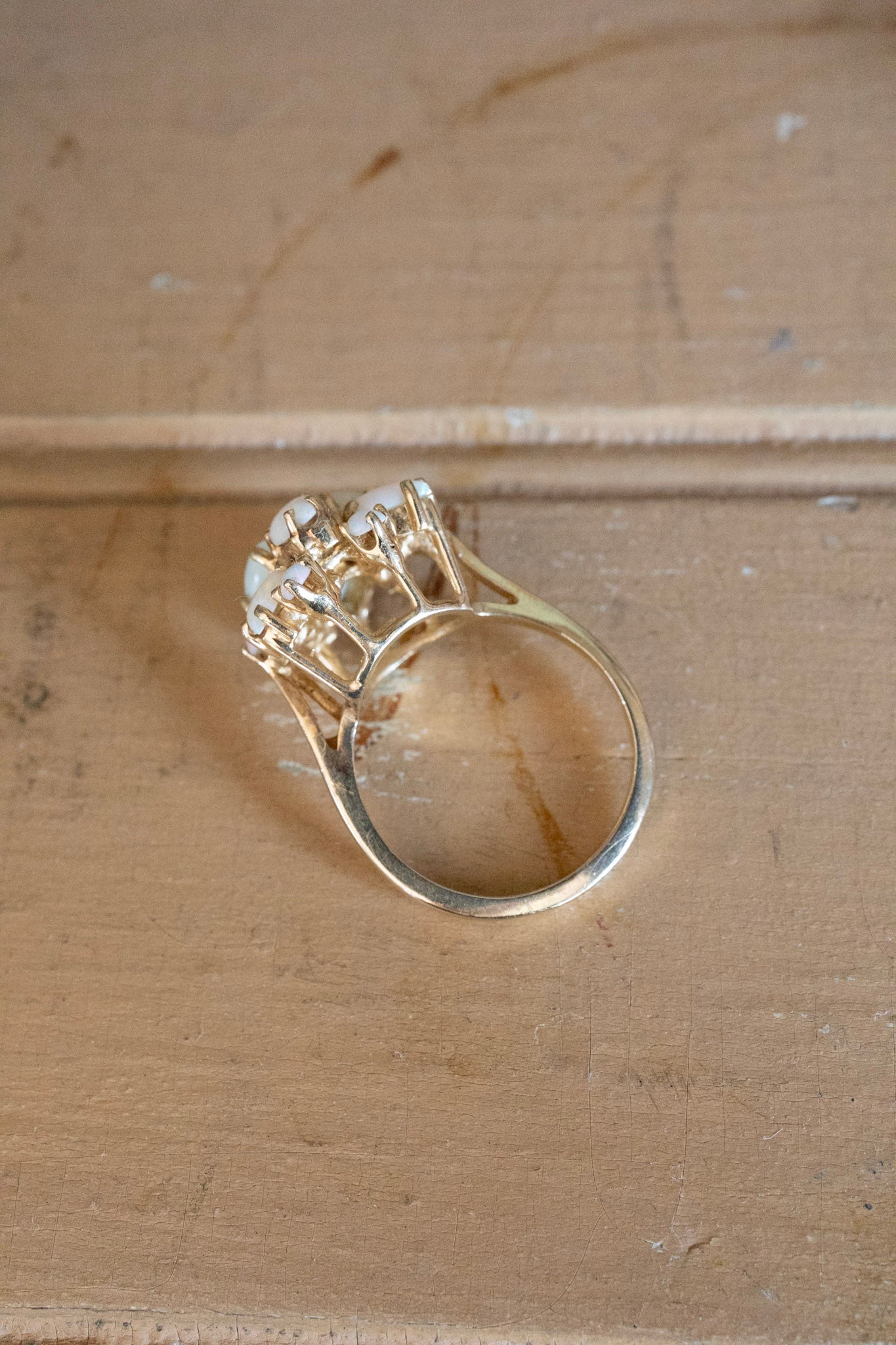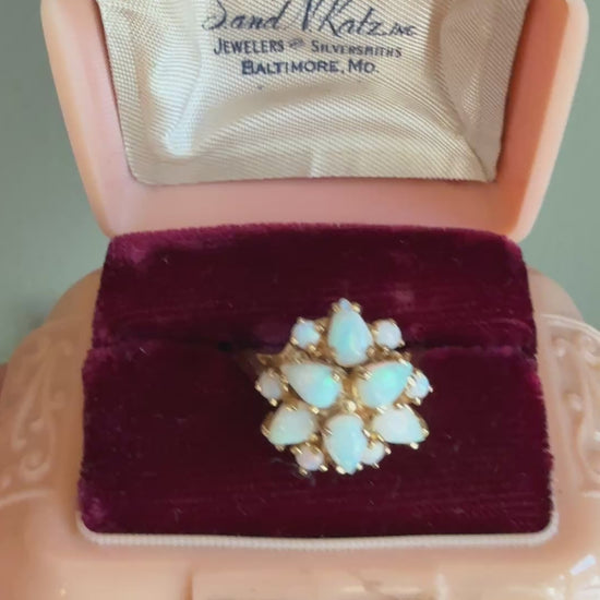 c1970 Vintage 14K Yellow Gold Round and Pear Shaped Opal Statement Ring
