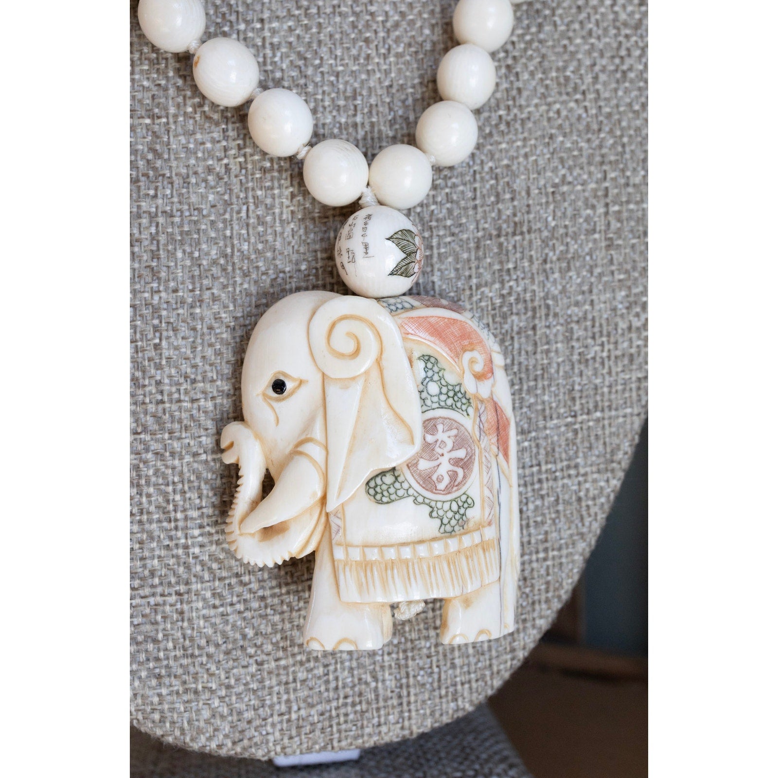 Carved Good Luck Chinese Elephant Necklace Hand Painted