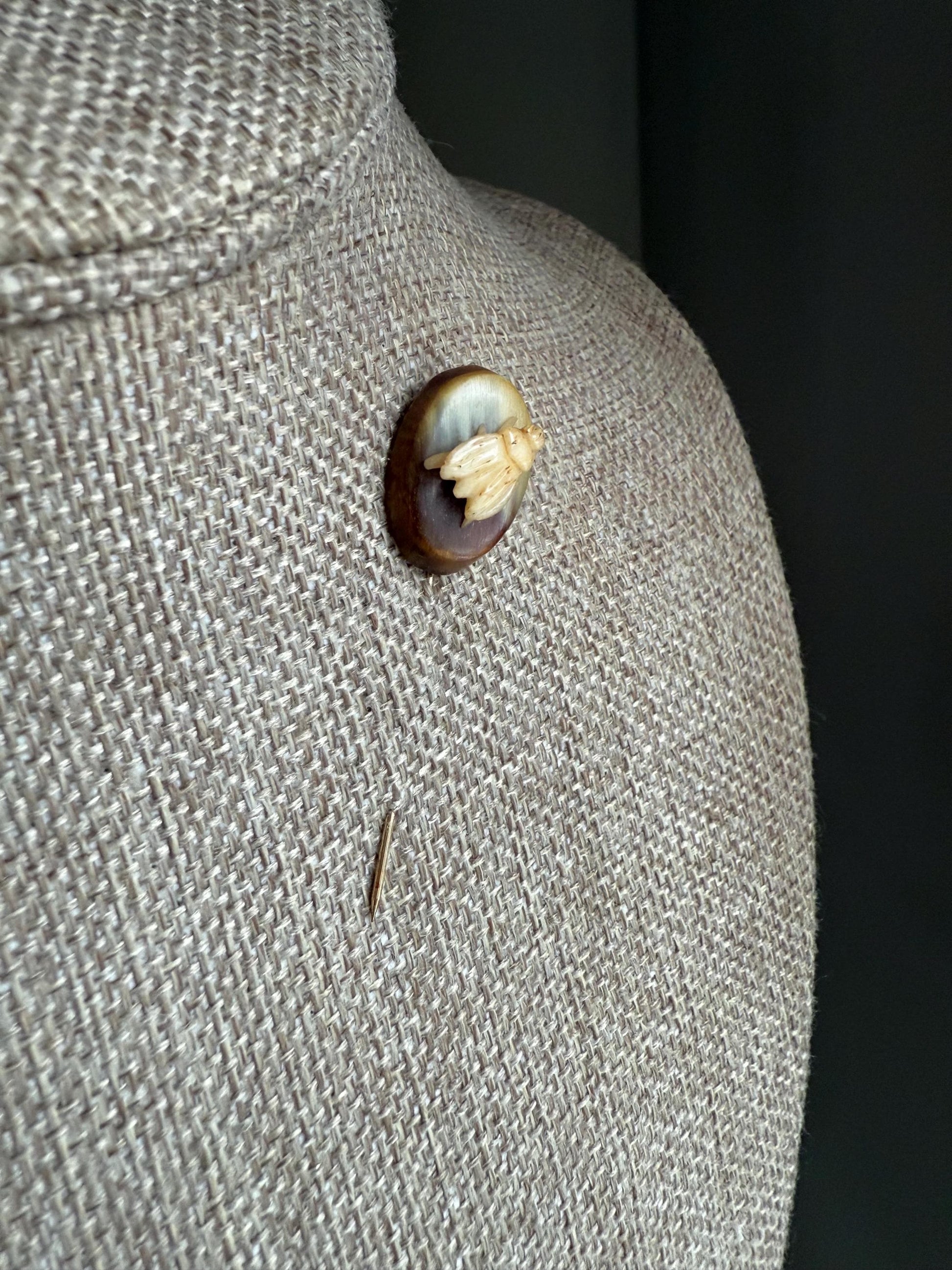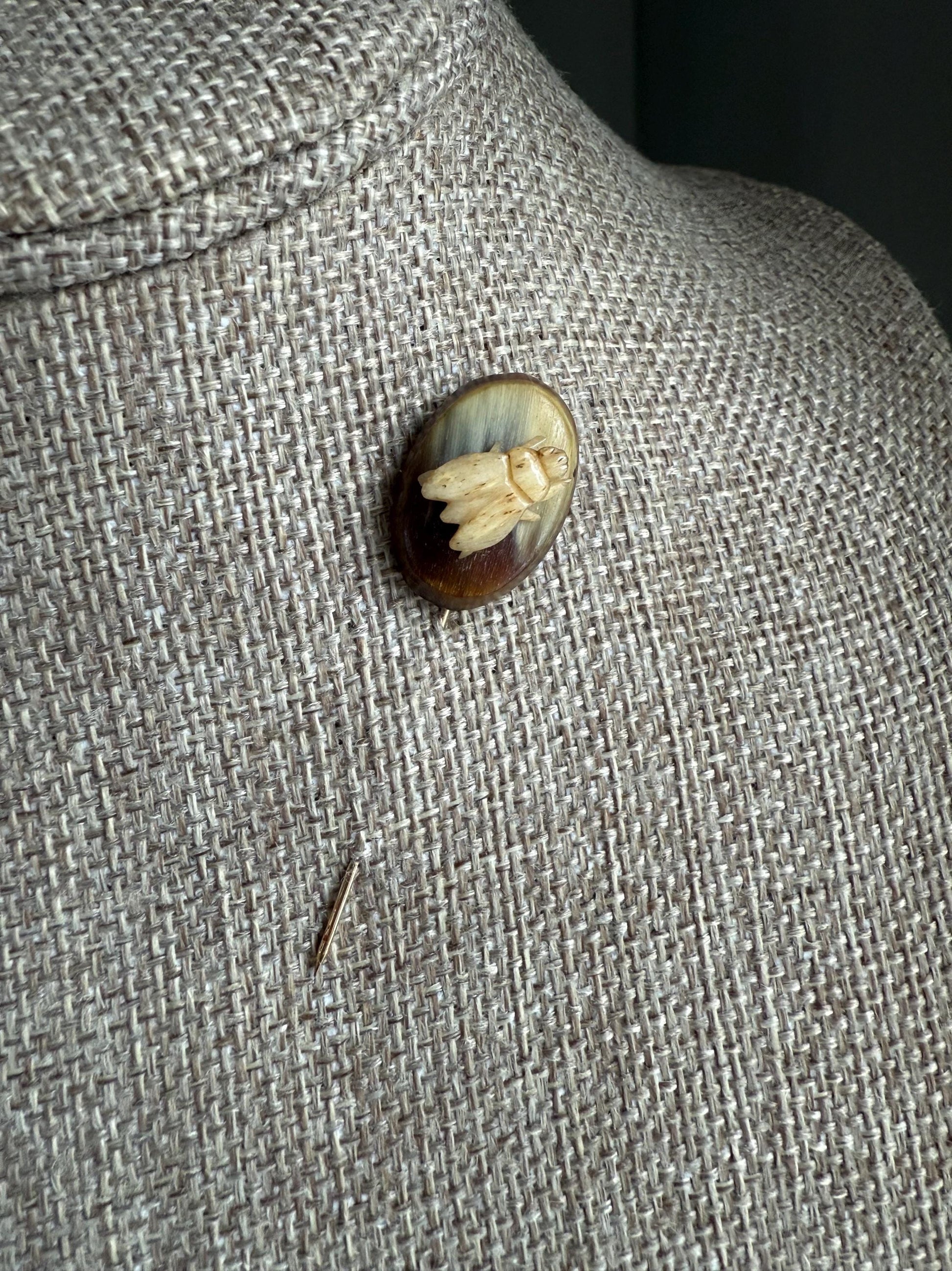 Interesting Antique Victorian Carved Antler Fly Insect Brooch Stickpin