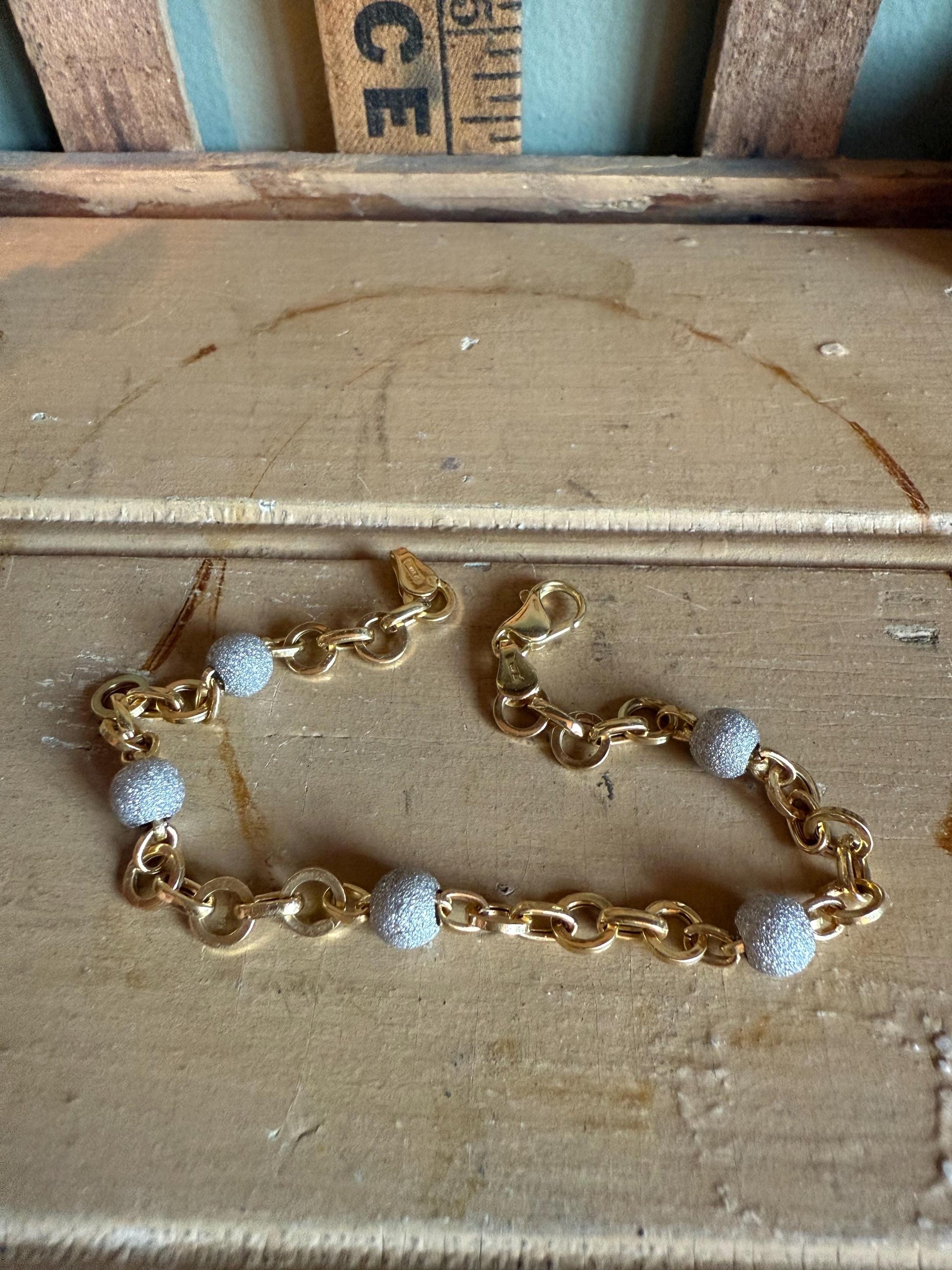 Italian 18K Yellow and White Gold Glitter Ball Link Bracelet