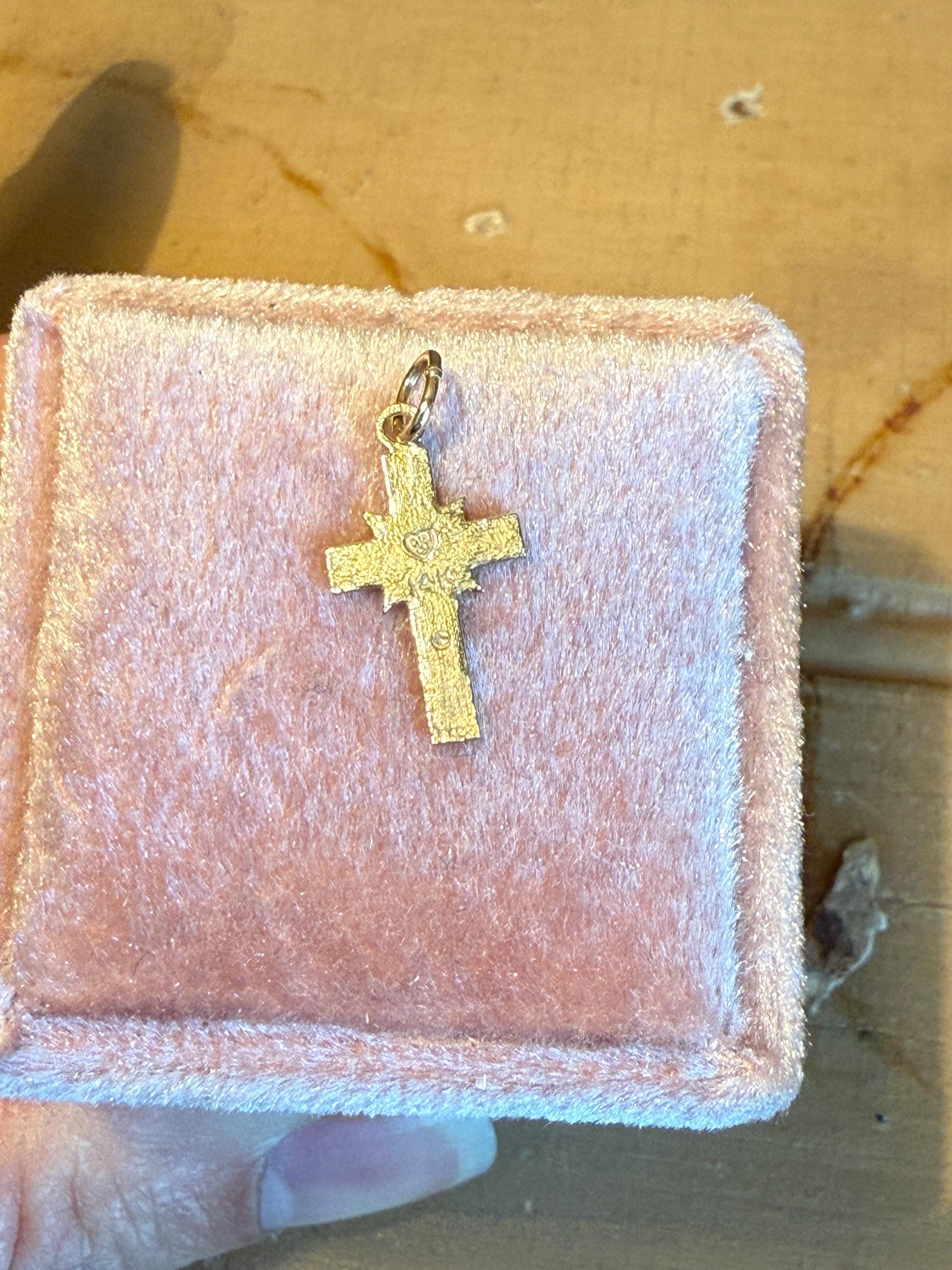 Little Vintage 10K Yellow Gold Engraved Front Cross