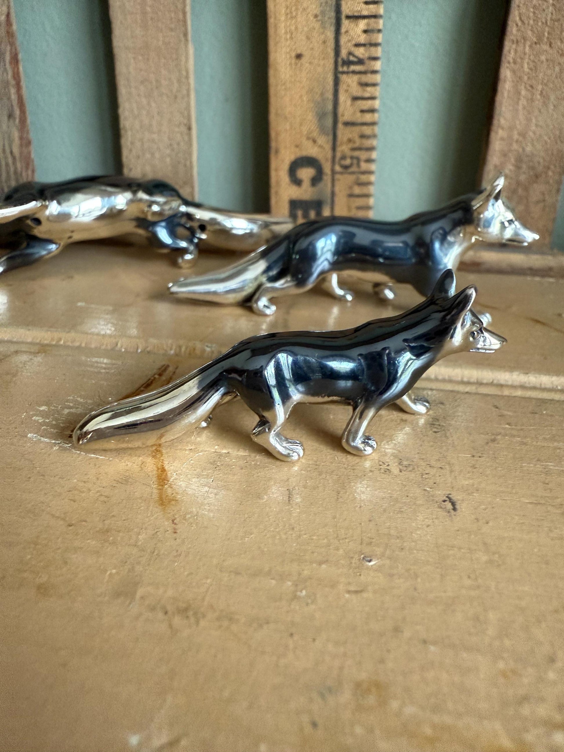 A collection of sterling silver foxes with darkened silver fur accent. All are stamped with jewelers mark and 925.
