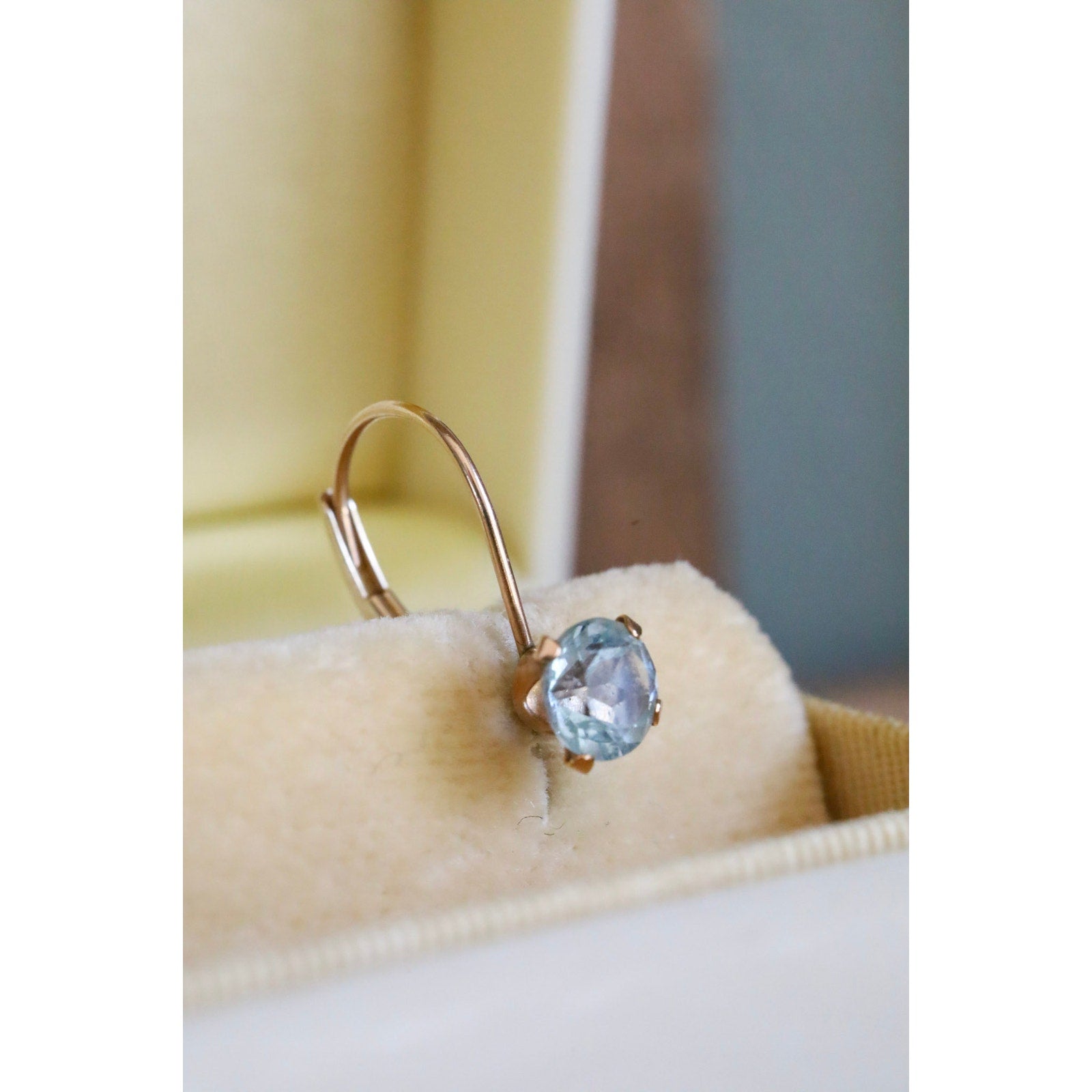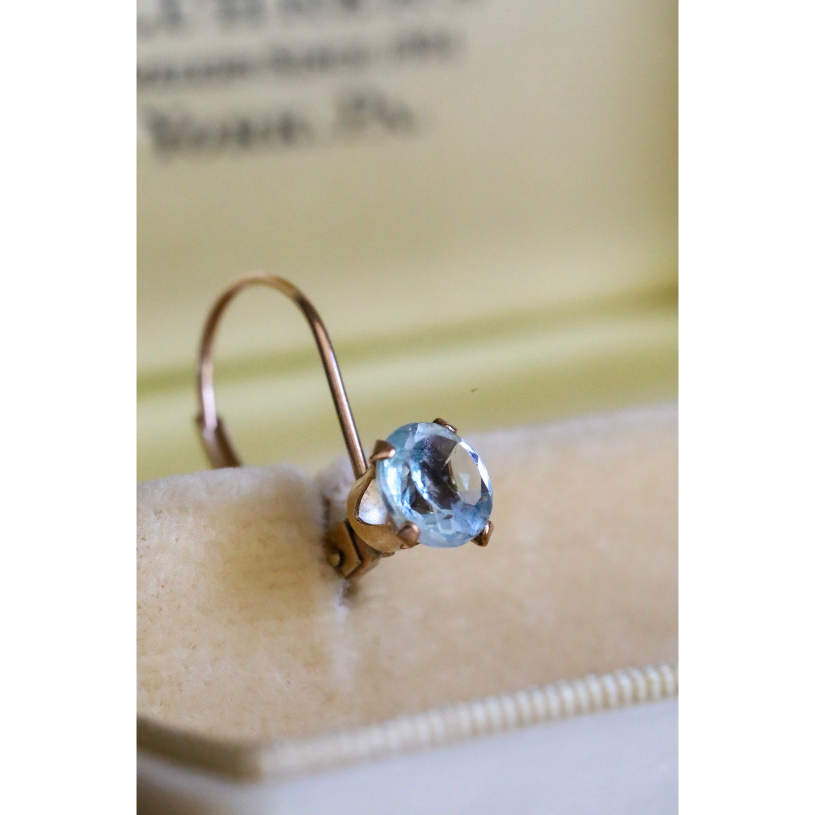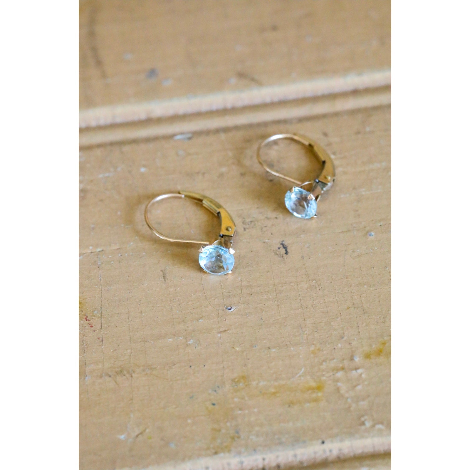 Vintage 10K Yellow Gold Dangle Earrings Set with Blue Topaz