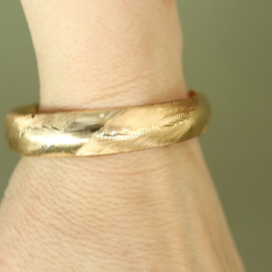 Vintage 14K Yellow Gold Oval Engraved Bracelet Bangle