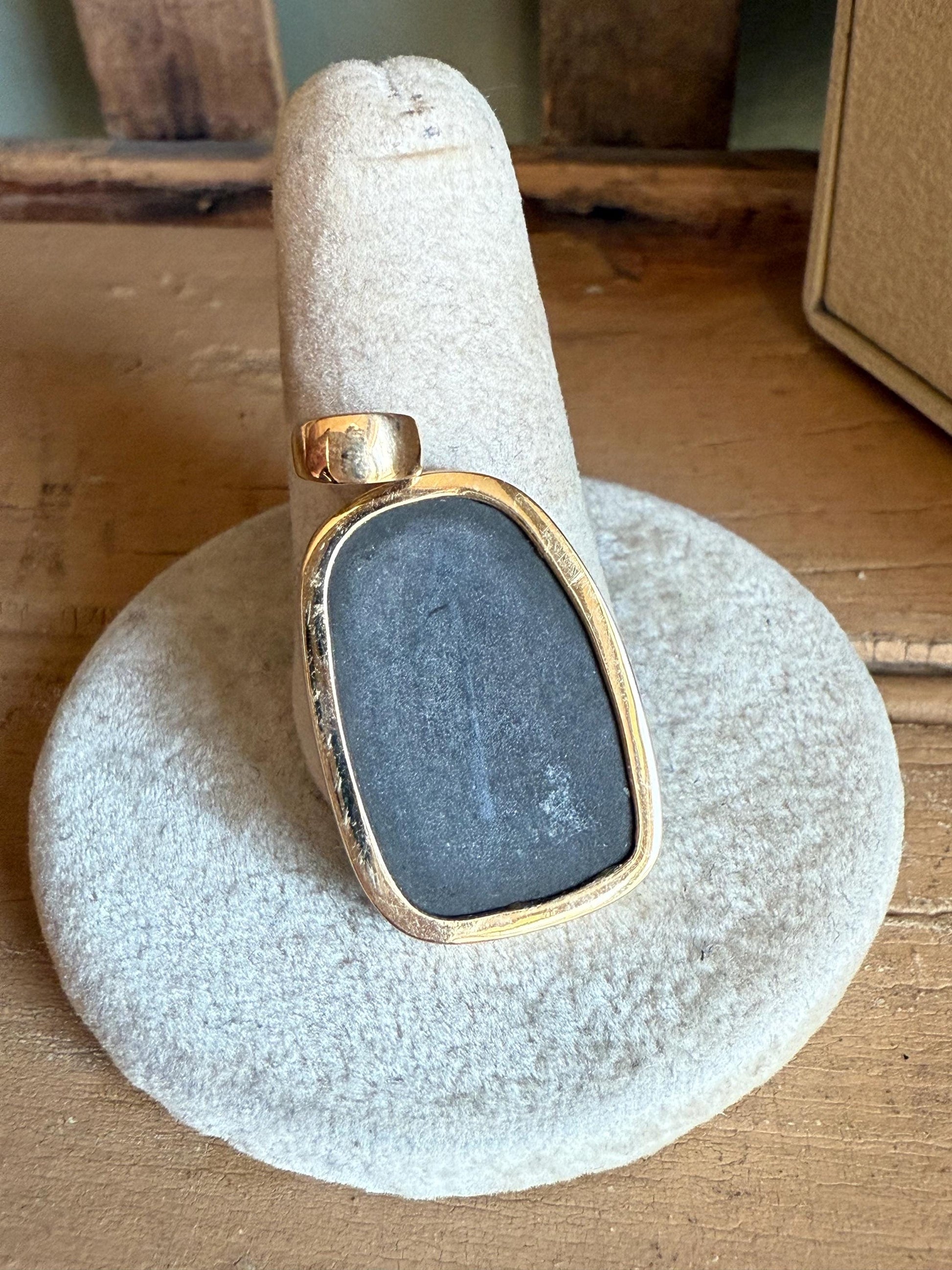 Vintage 14K Yellow Gold Pendant Featuring Ammolite Fossil