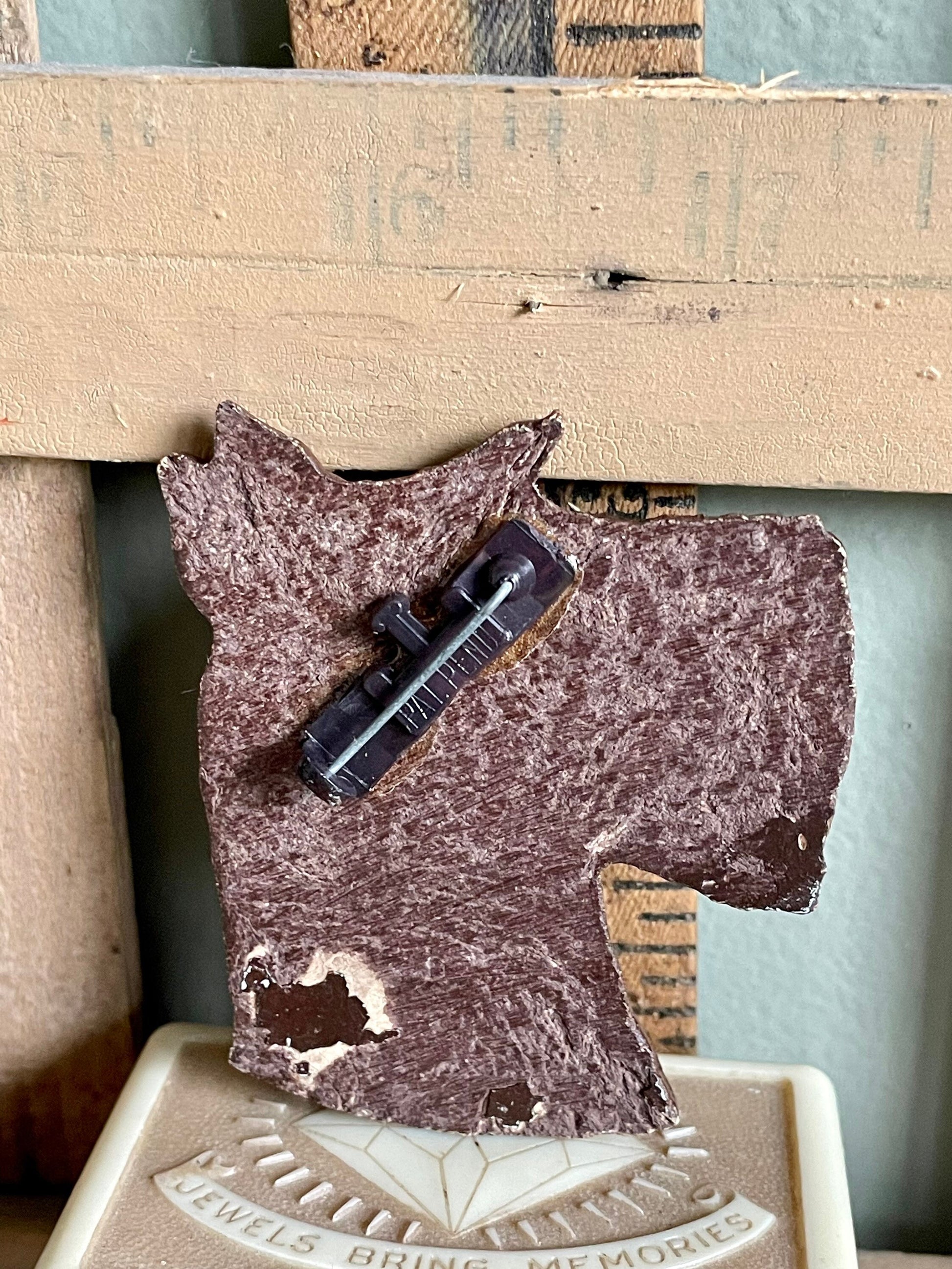 Vintage 1940-1950 Wood Pulp Scotty Dog Brooch