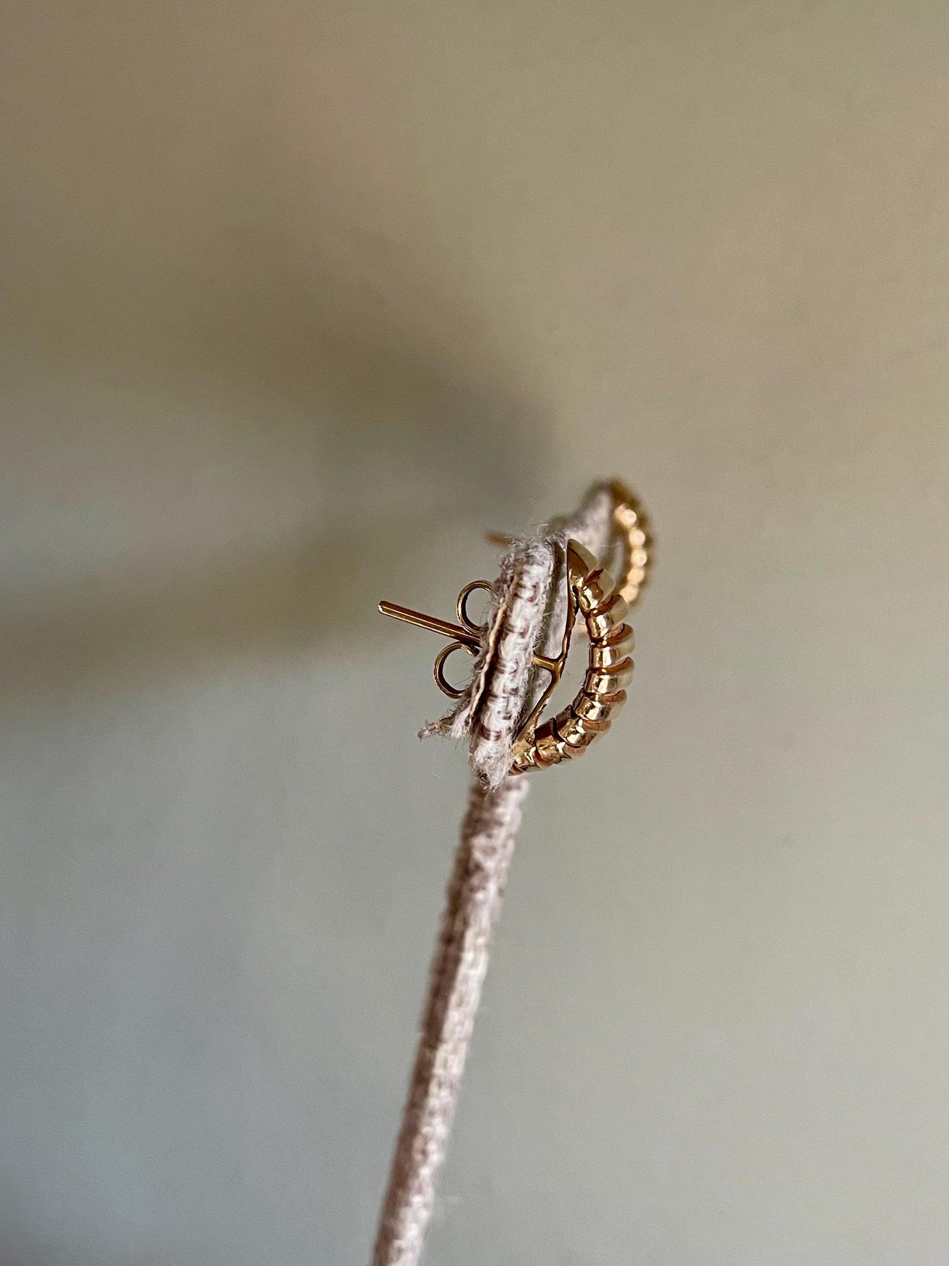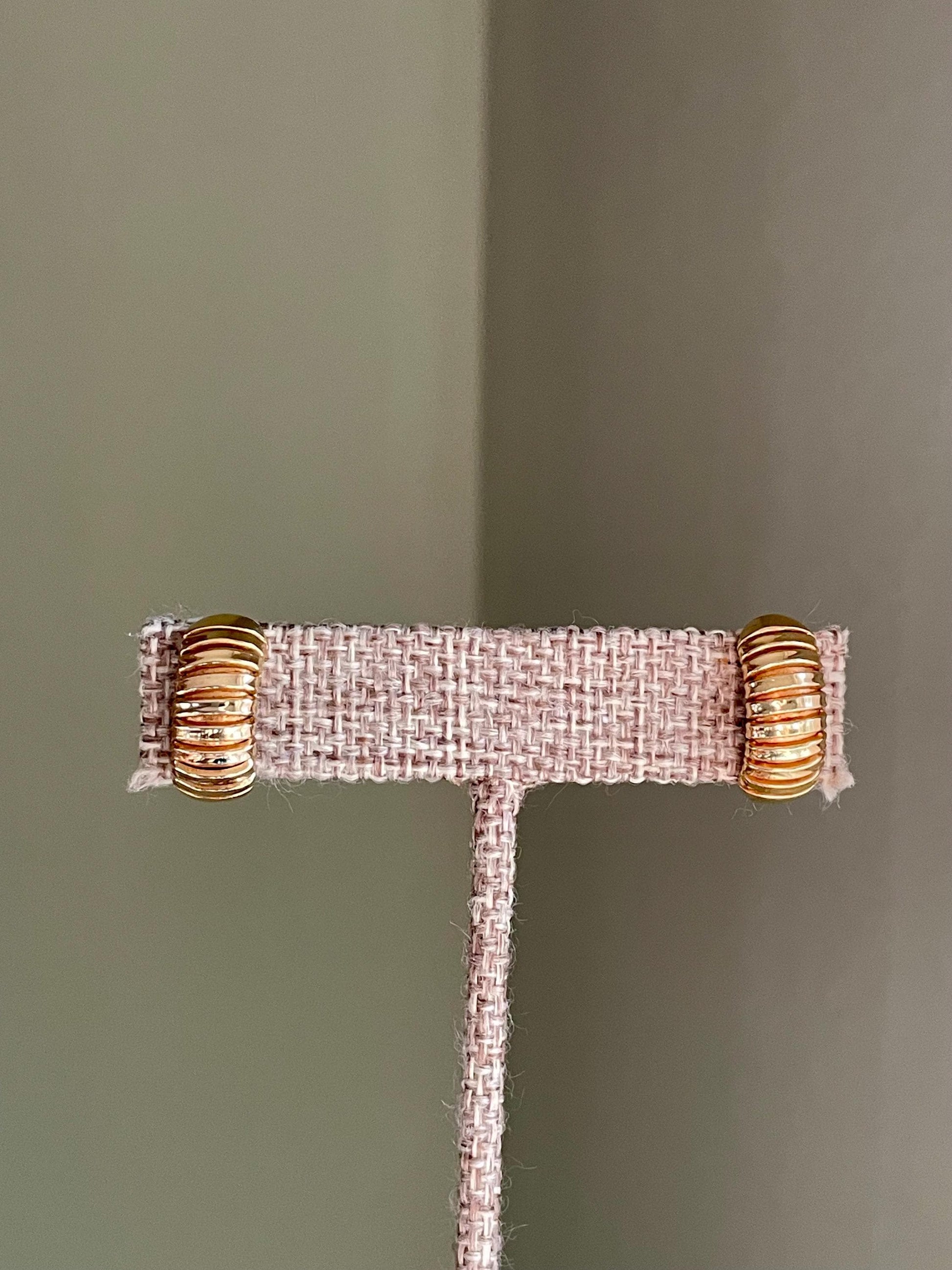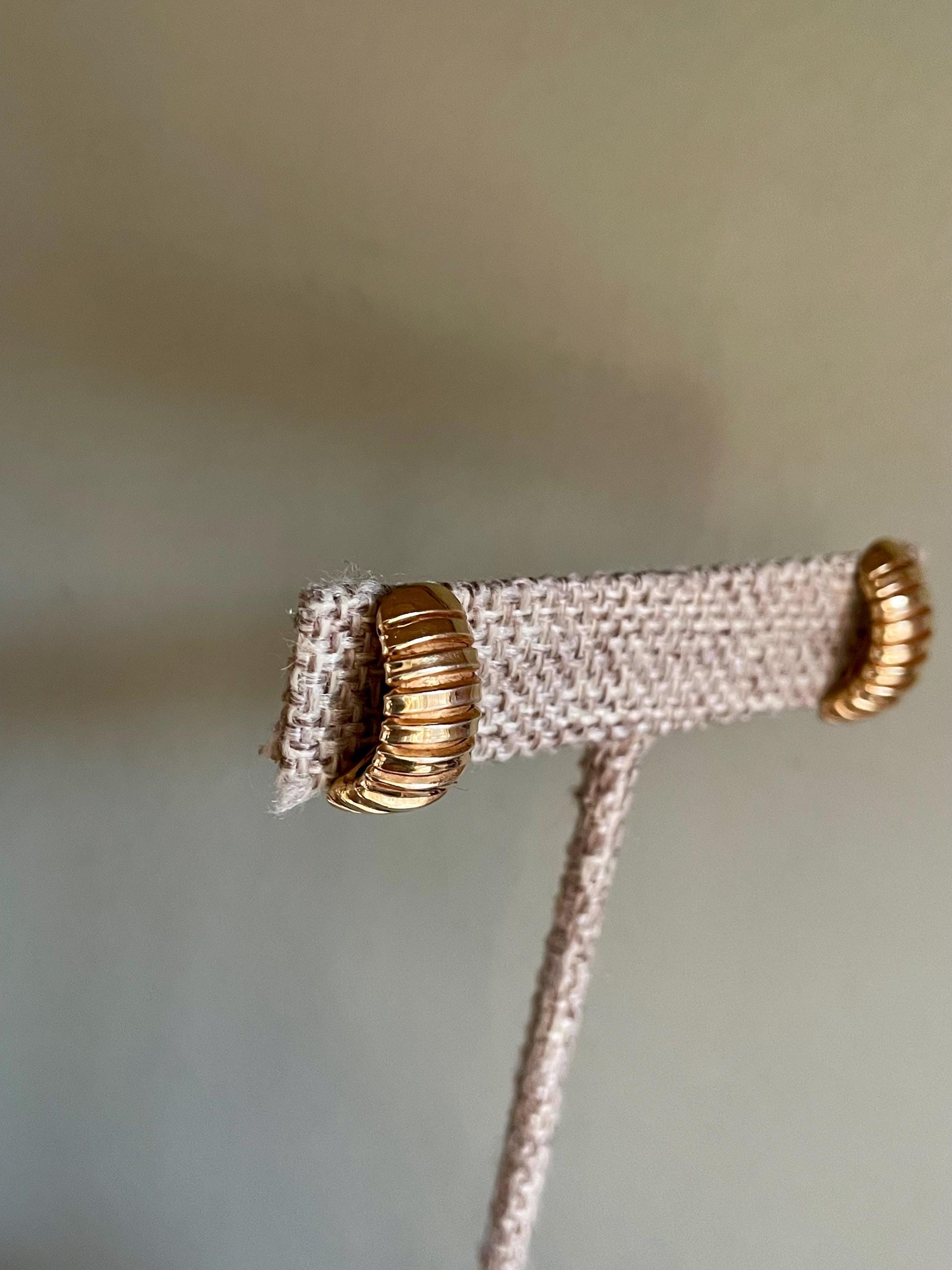 Vintage 1970-80's Solid 18K Yellow Gold Ribbed Semi Hoop Earrings