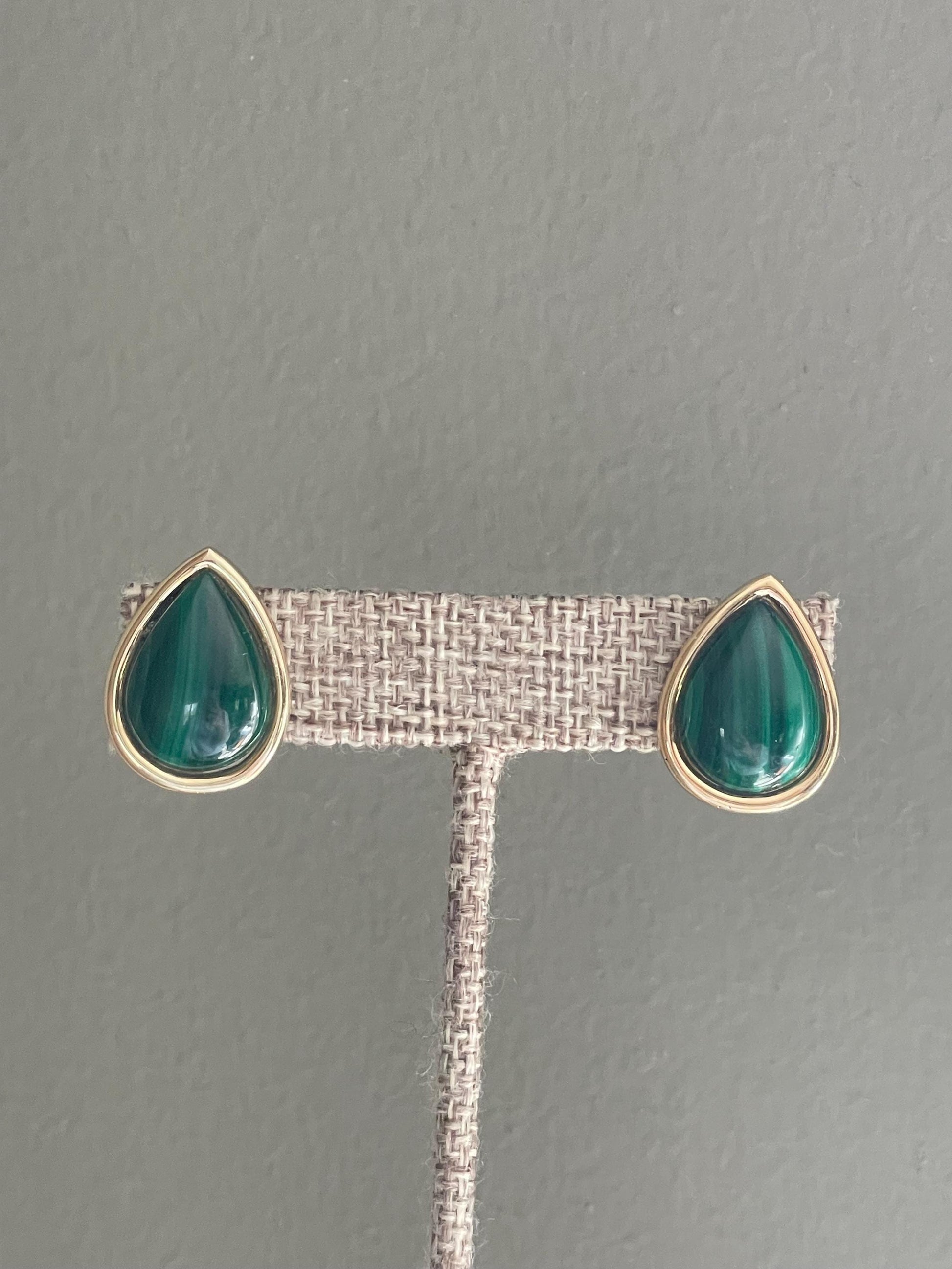 Vintage 1980's 14K Yellow Gold Tear-Shaped Malachite Earrings