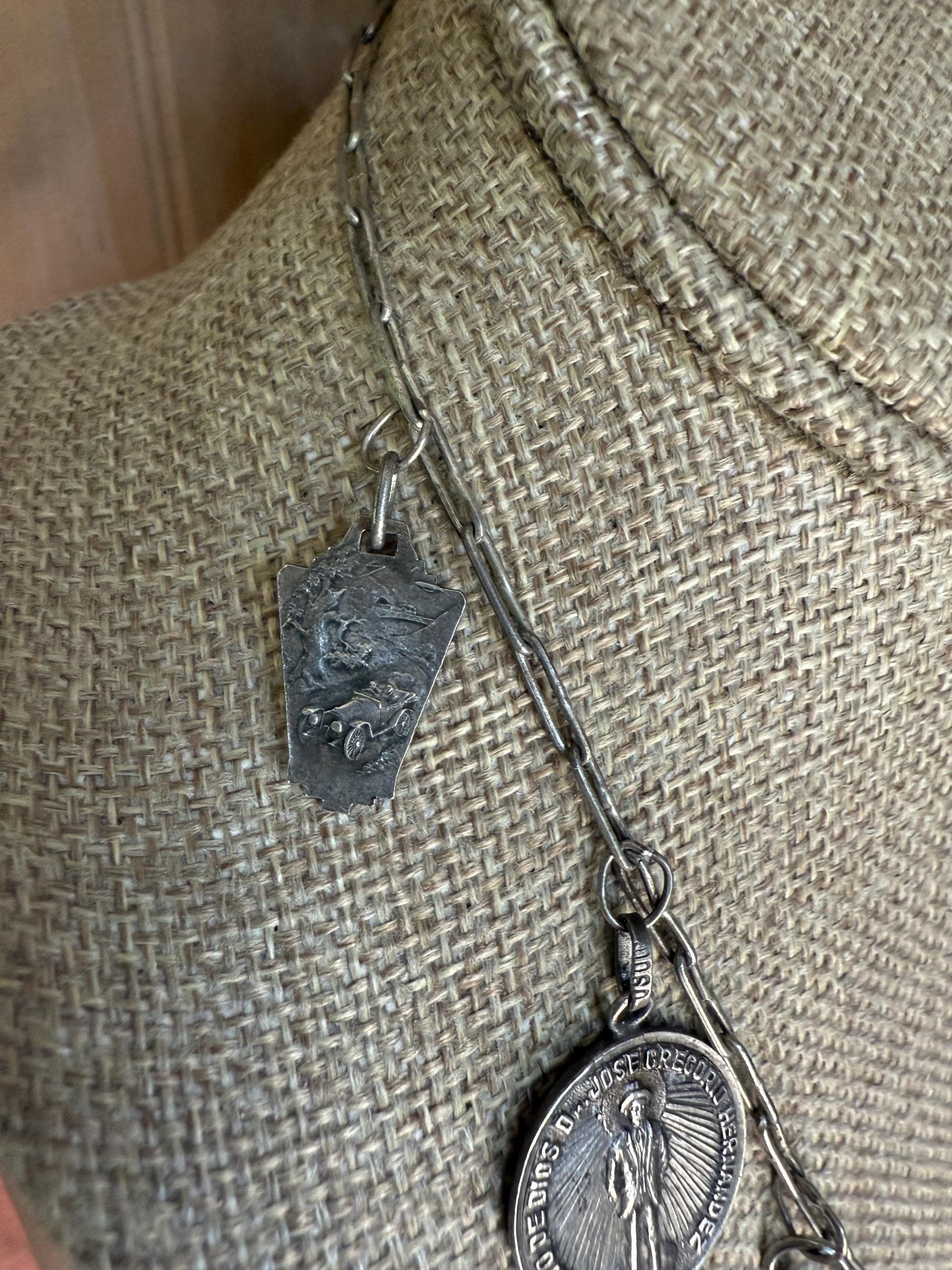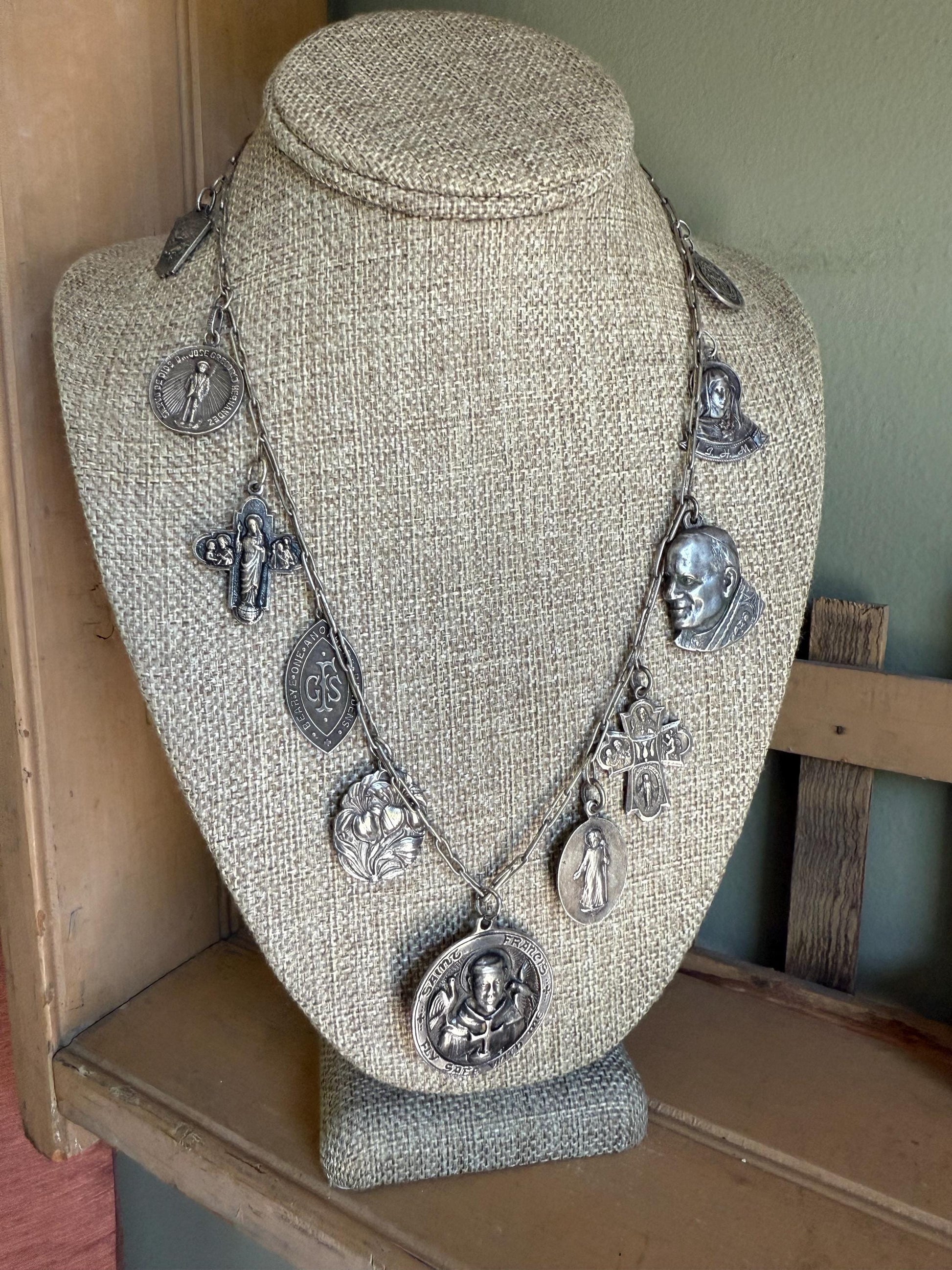 Vintage/Antique Collection of Religious Medallions Charms on Original Chain