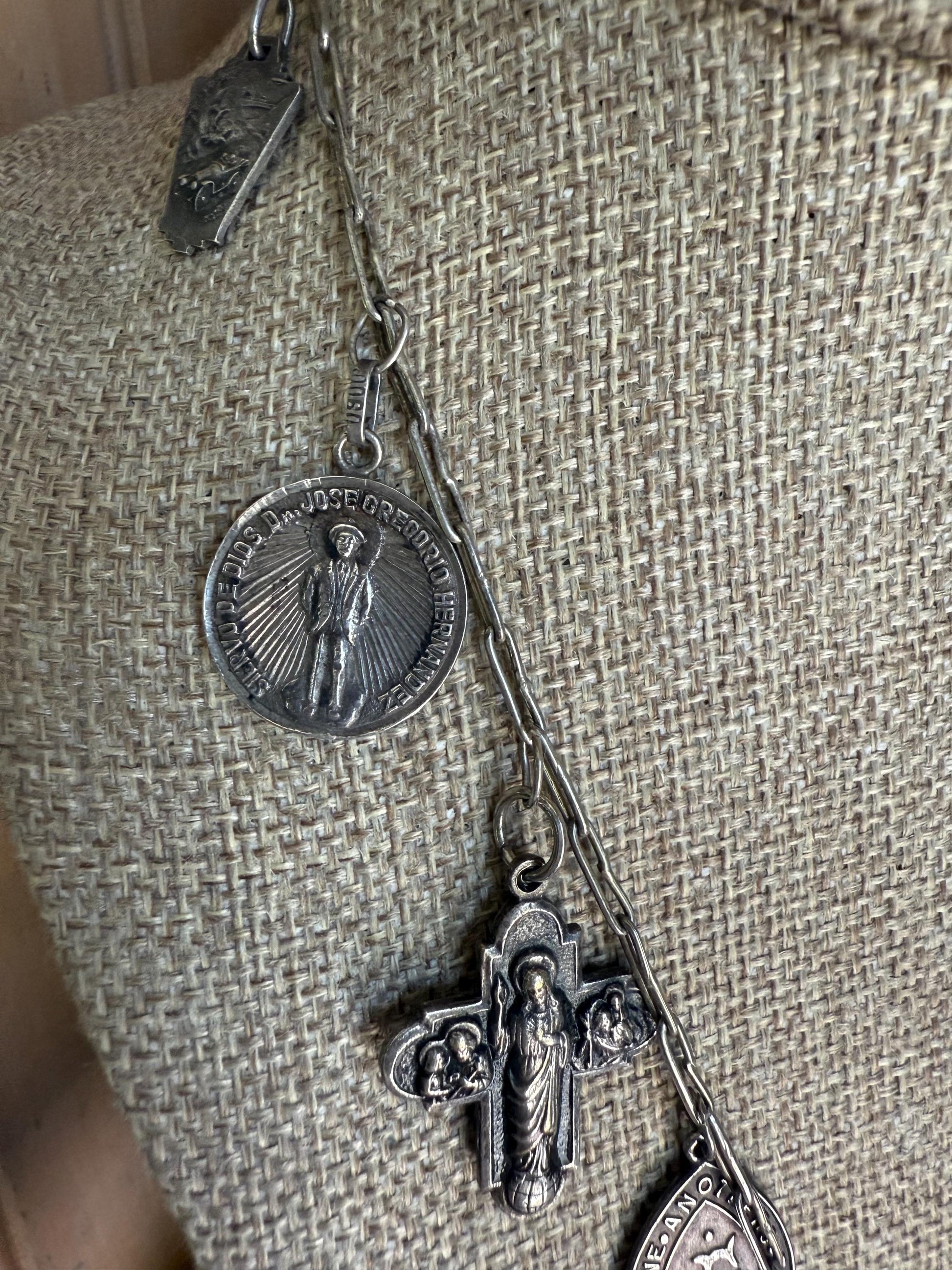 The center medallion is Saint Francis measuring approx. 1 1/4" diameter. Interesting collection that includes a pope in profile, Mary and Jesus, St. Anthony, Guardian angel, Dr. Jose Gregorio, St. Christopher and more.