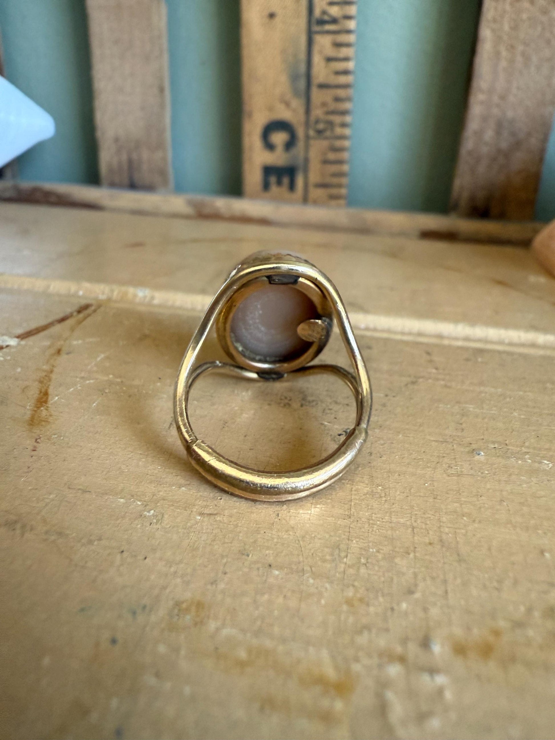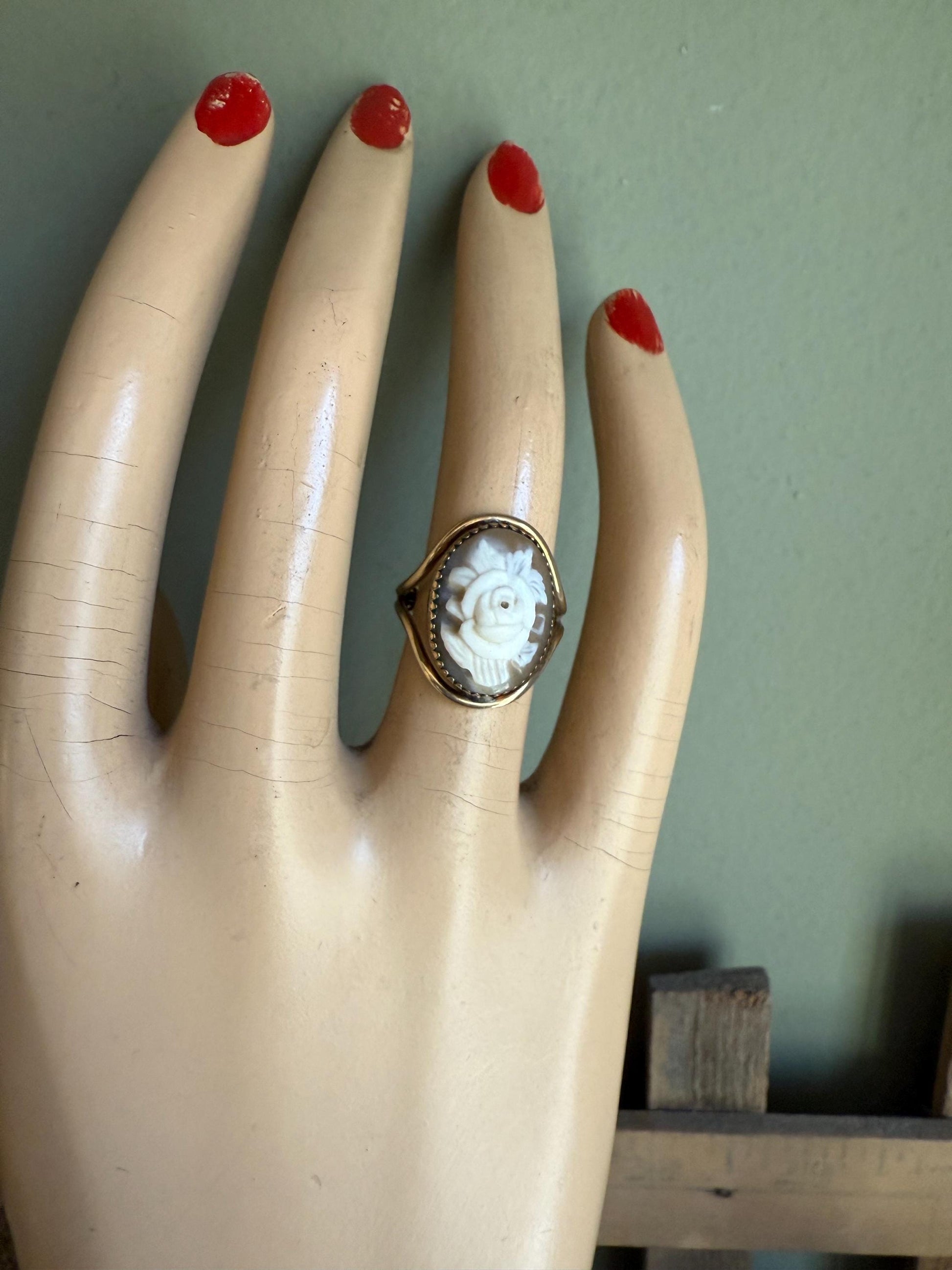 Vintage Burt Cassell 12K Gold Filled Hand Carved Shell Cameo of a Rose Ring