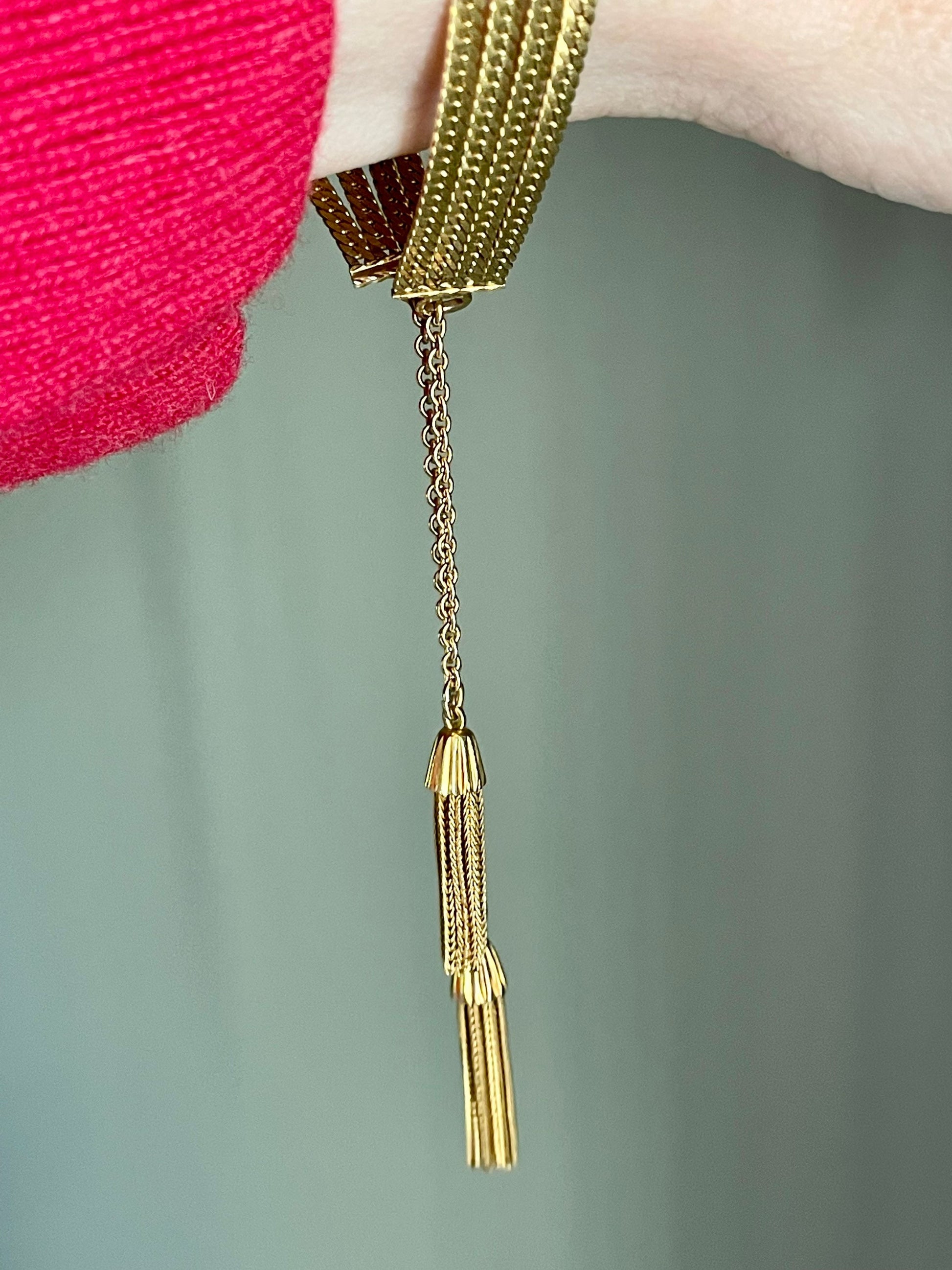 Vintage Four Link Shell Cameo Bracelet with Tassels