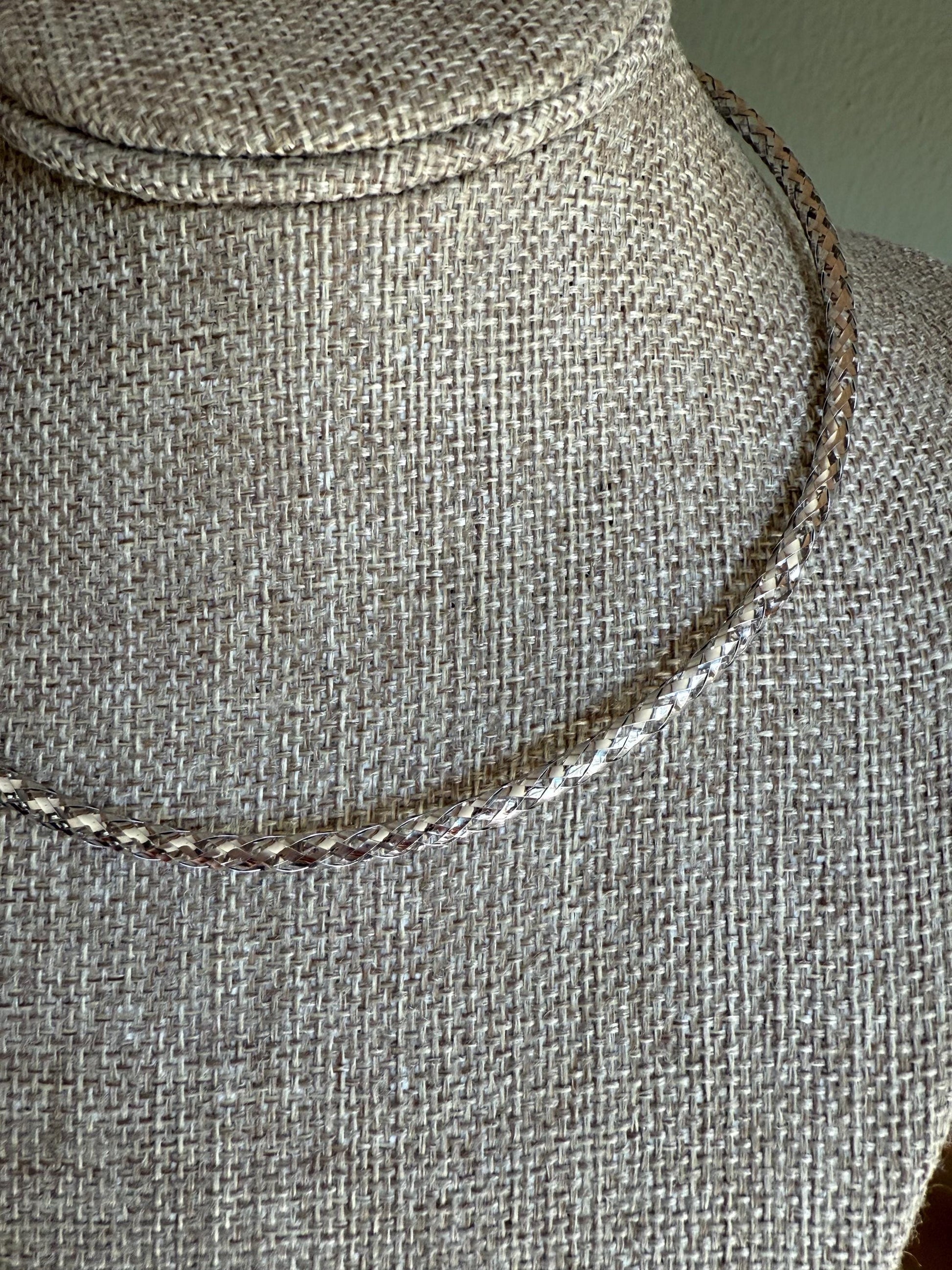 Vintage Milor 14K White Gold Woven Tublar Adjustable Collar Style Necklace