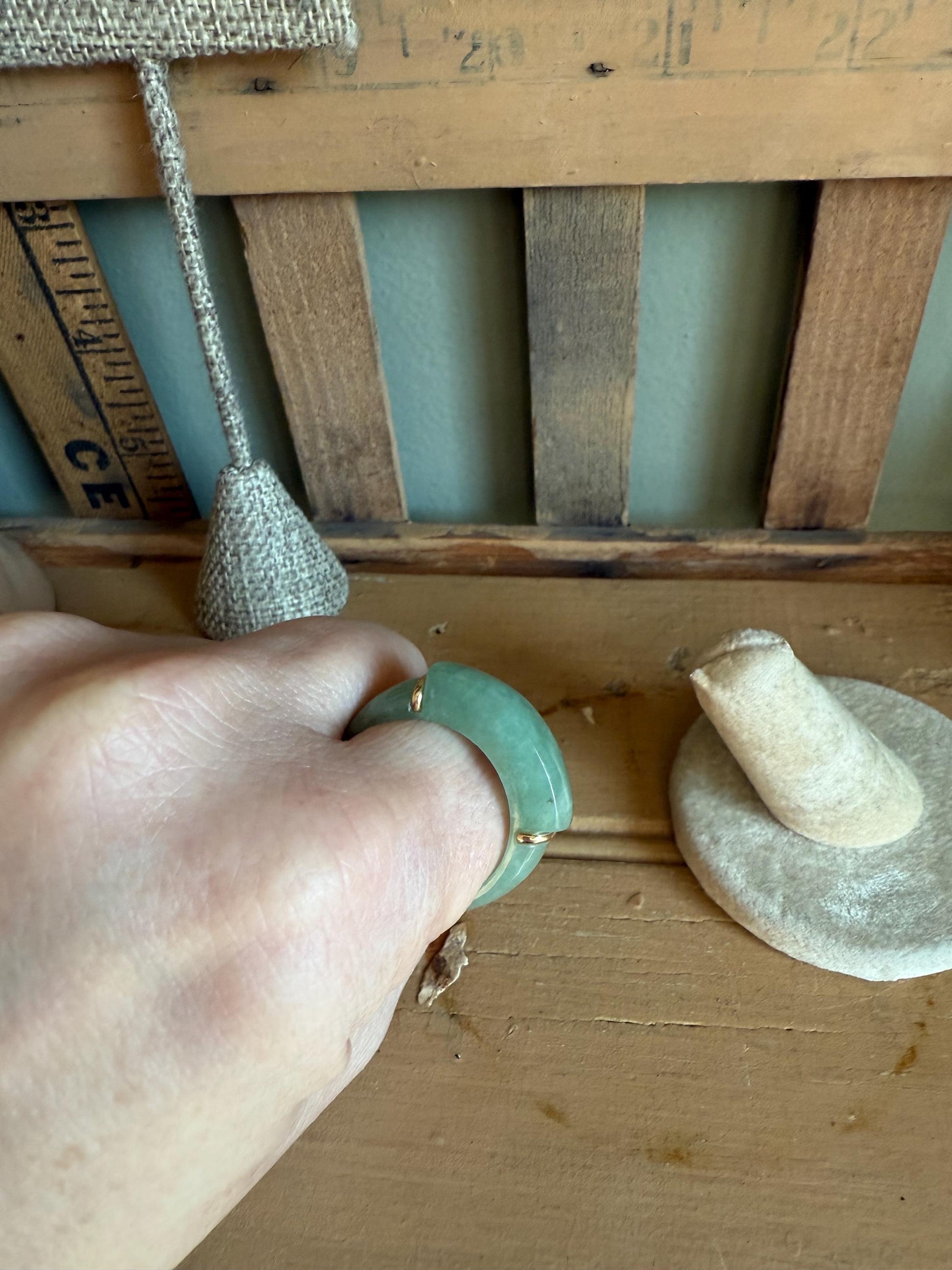 Vintage Solid Green Jade Ring with 14K Accents Size 11