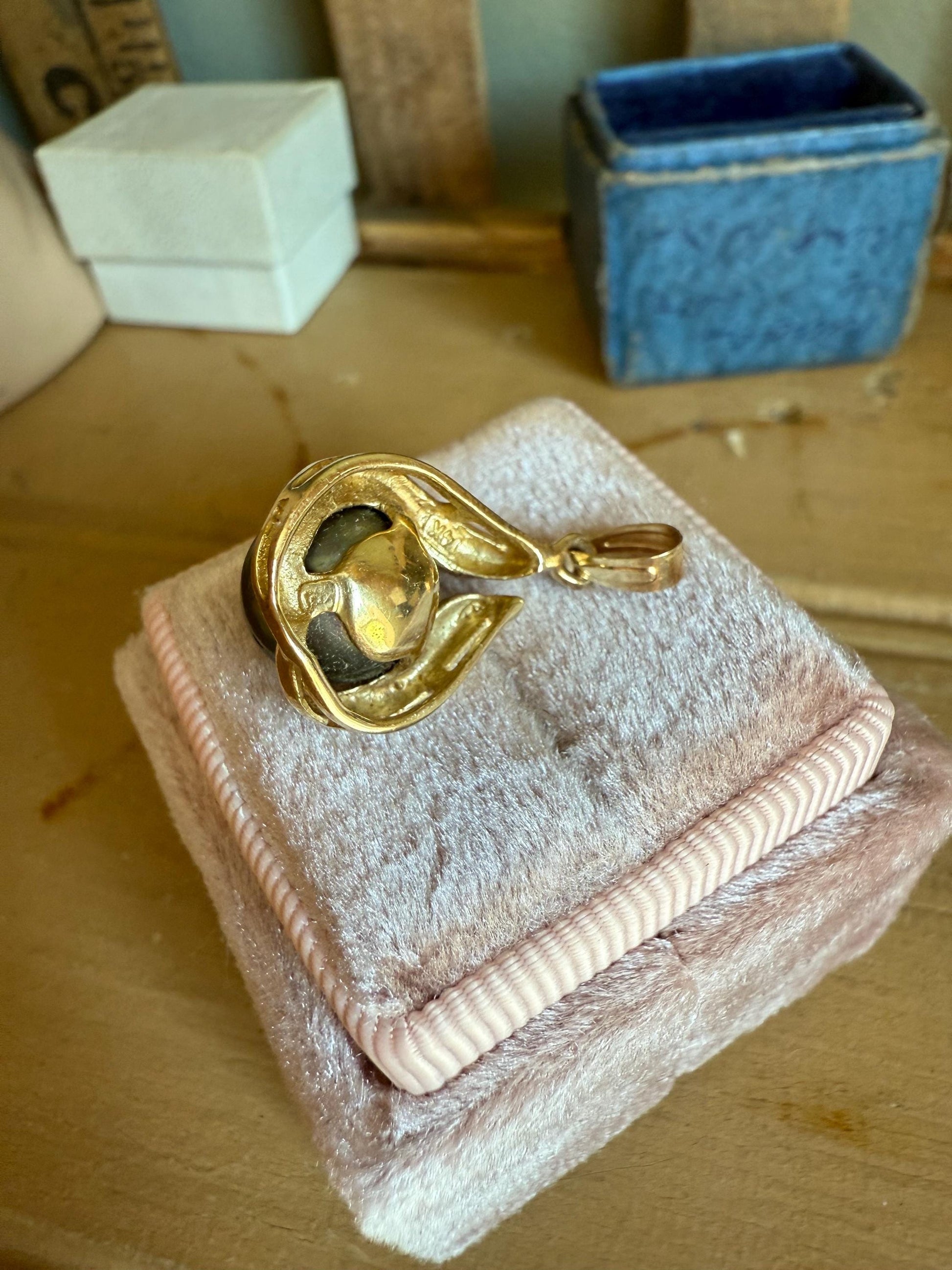 Vintage Tahitian Pearl Pendant in 14K Yellow Gold