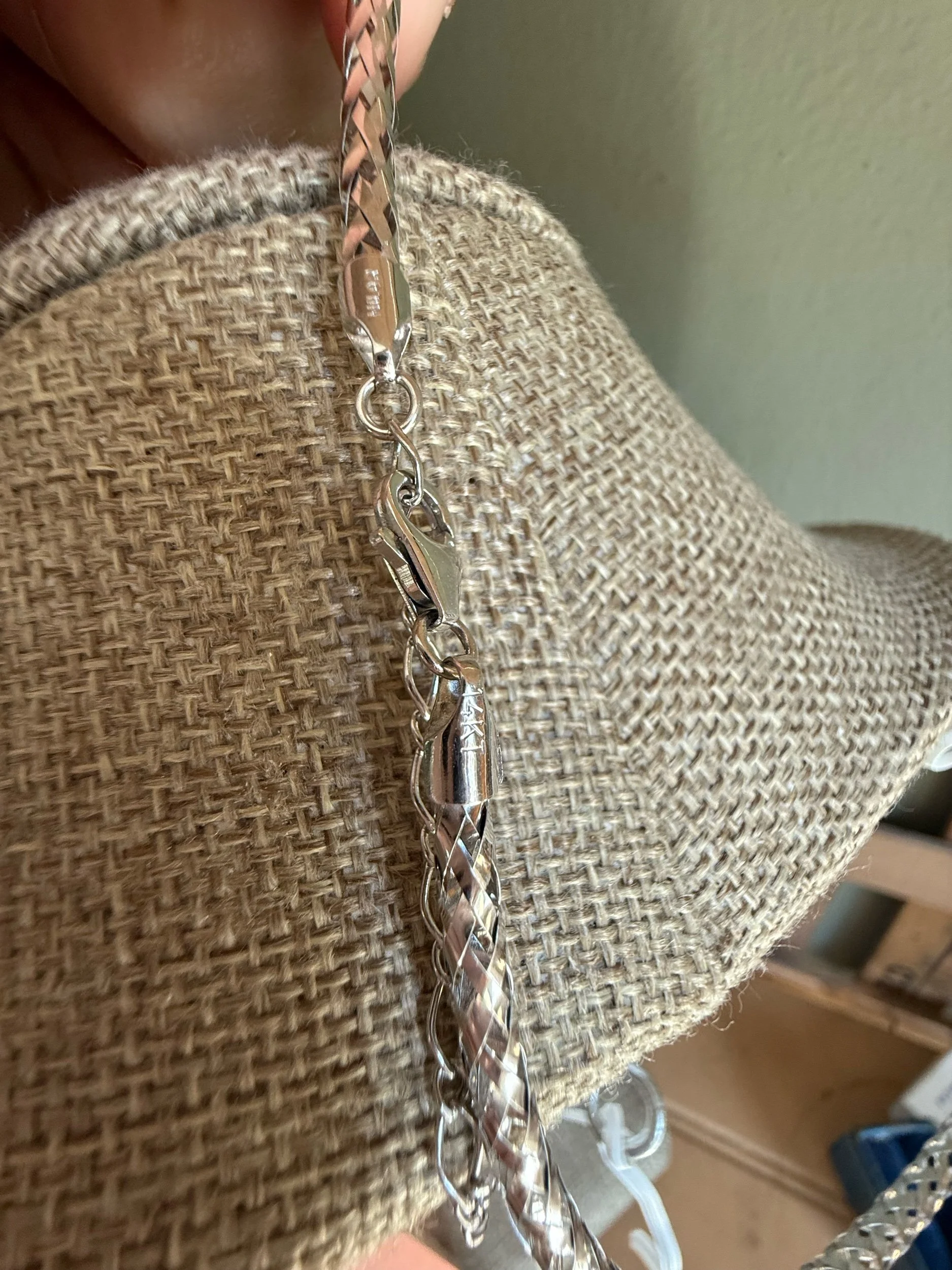 A great piece that you will wear again and again. Made by Milor-it is marked 14K and tested. The tublar woven link collar measures 3.44 mm wide. The length can be 17" -19". Larger lobster clasp makes it easy to put on and take off.