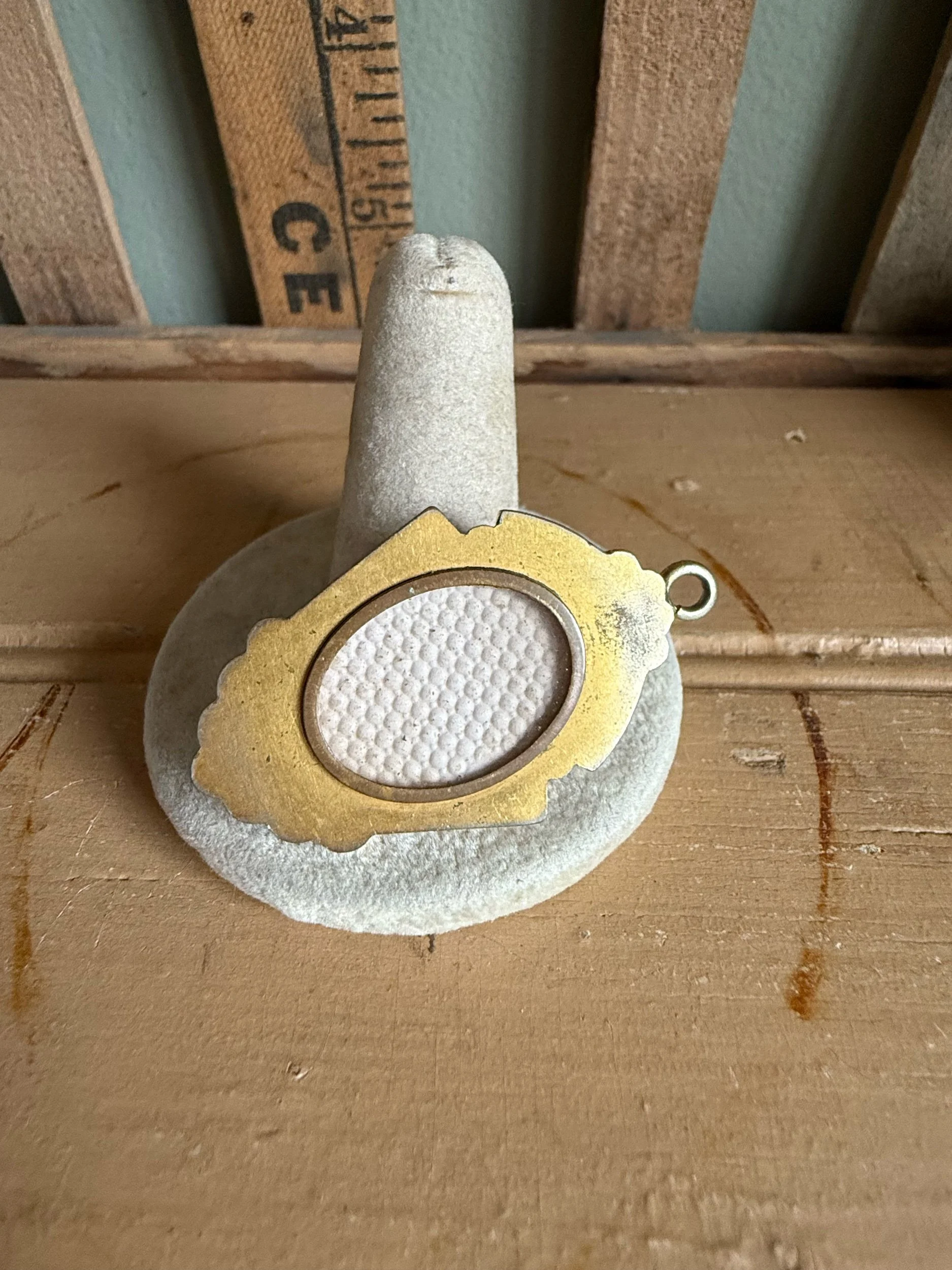 Antique Victorian 1880's-Gold filled set with an oval hand carved banded agate cameo of a lady in profile. The style is etruscan revival. Back has a glass covered compartment. 1 3/4 x 1 wide. Overall in very good antique condition.