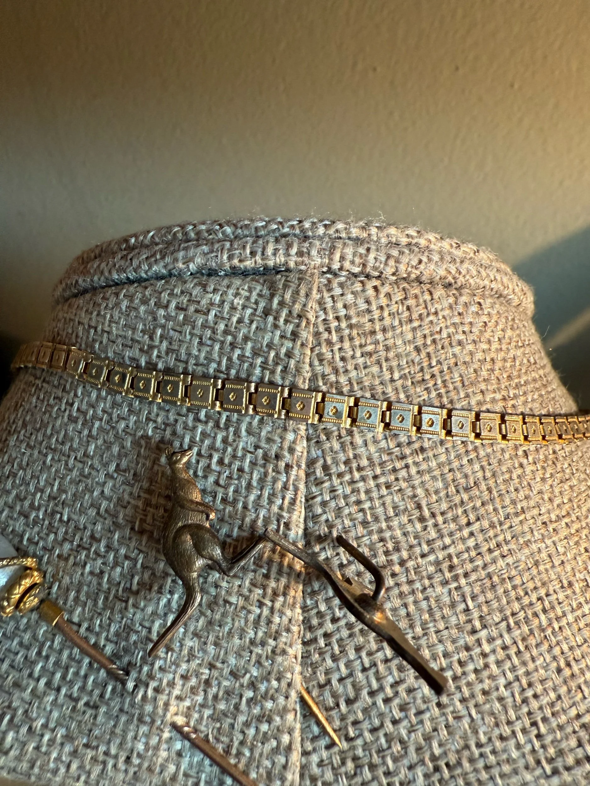 Overall in very good condition-just a few links that are slighty pressed down with a break that doesn't affect wearablity. The connections between links are present and you don't know unless louped. See photo of close up.