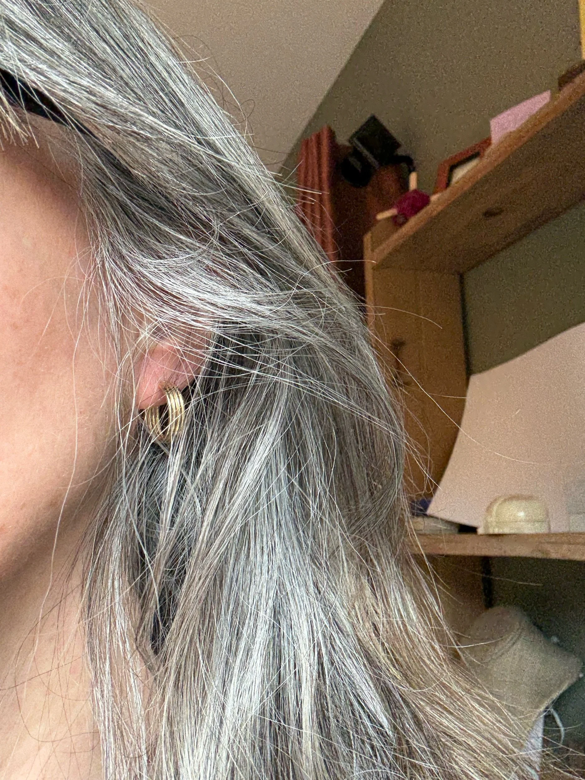 14K yellow gold ribbed hoops. 1/4" wide and 3/4" diameter.